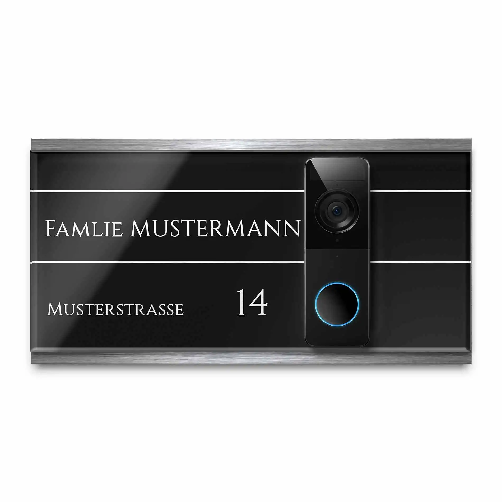 Du suchst eine stilvolle Möglichkeit um Deine Funkklingel im Hauseingang zu befestigen? Gestalte eine Klingelplatte für Deine Funkklingel und personalisiere sie genau nach Deinen Wünschen. Unsere hochwertigen Funkklingelschilder aus massivem V2A Edelstahl und hochglänzendem Acrylglas machen Deine Doorbell Türklingel zu einem echten Hingucker im Eingangsbereich.