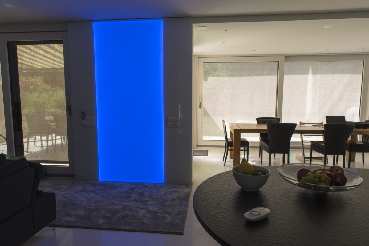 Die LED Leuchtwand RGB wurde für Ihre Küche oder Wohnraum entwickelt als homogene LED Flachleuchte in Echt-Glas ESG.