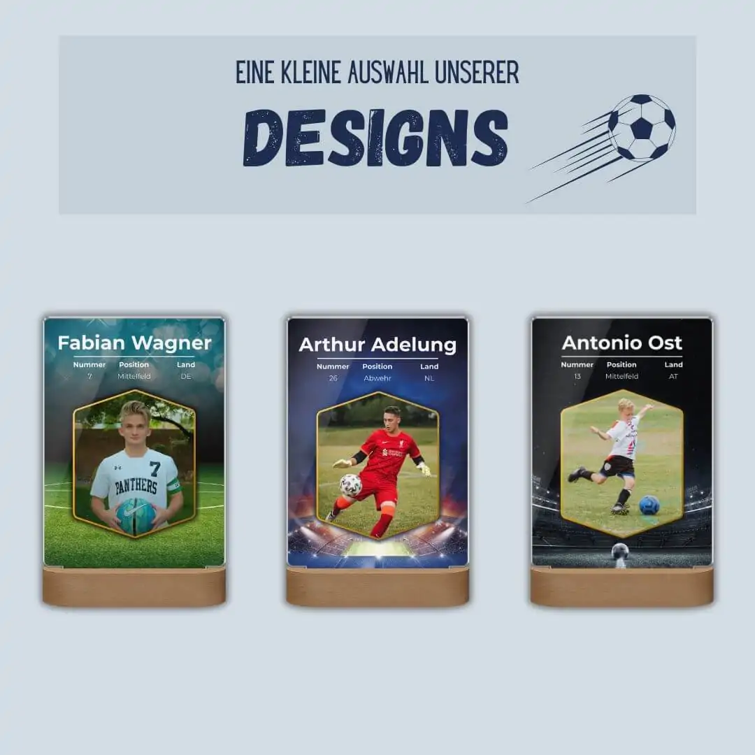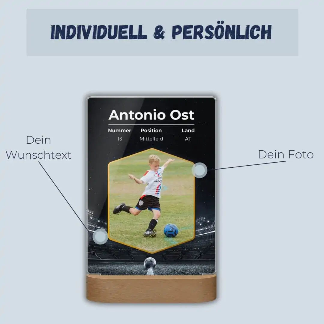 Es ist nicht nur ein Dekorationsstück, sondern ein Symbol für Leidenschaft, Hingabe und die Liebe zum Fußball, das junge Spielerinnen und Spieler motiviert und ihnen zeigt, dass sie ihre eigenen Legenden sein können. Ein perfektes Geschenk zur EM, das die Augen jeder Fußballlegende, ob klein oder groß, zum Leuchten bringt und ihnen einen Ehrenplatz in der Familie der Fußballfans sichert. Deine Mannschaft – Dein Stil. Im Konfigurator kannst Du unter Varianten Dein Design wählen und es mit einem eigenen Foto und Wunschtext verfeinern.