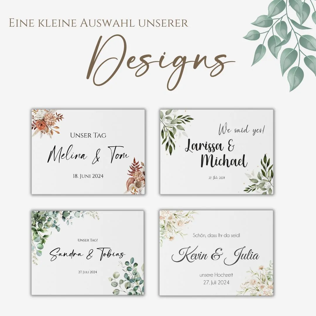 Dieses Wandbild eignet sich perfekt als elegantes Willkommensschild am Eingang deiner Hochzeitsfeier oder als beeindruckendes Highlight im Festsaal. Nach dem großen Tag wird es zu einem wertvollen Erinnerungsstück, das die Freude und Liebe dieses besonderen Anlasses in deinem Zuhause lebendig hält.