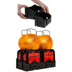 Der Leitkegeladapter besteht aus Kunststoff und hat 3 Magnete, an denen der StreetFlash schnell und einfach angebracht werden kann. An den beiden seitlichen Magneten kann je ein StreetFlash Blitzmodul vertikal befestigt werden. Am oberen Magnet kann ein Blitzmodul horizontal aufgelegt werden. So haben Sie die Möglichkeit, entweder die 16 Rundum-LED der Schnellabsicherungsleuchte oder die 4 LED auf der Oberseite einzusetzen.