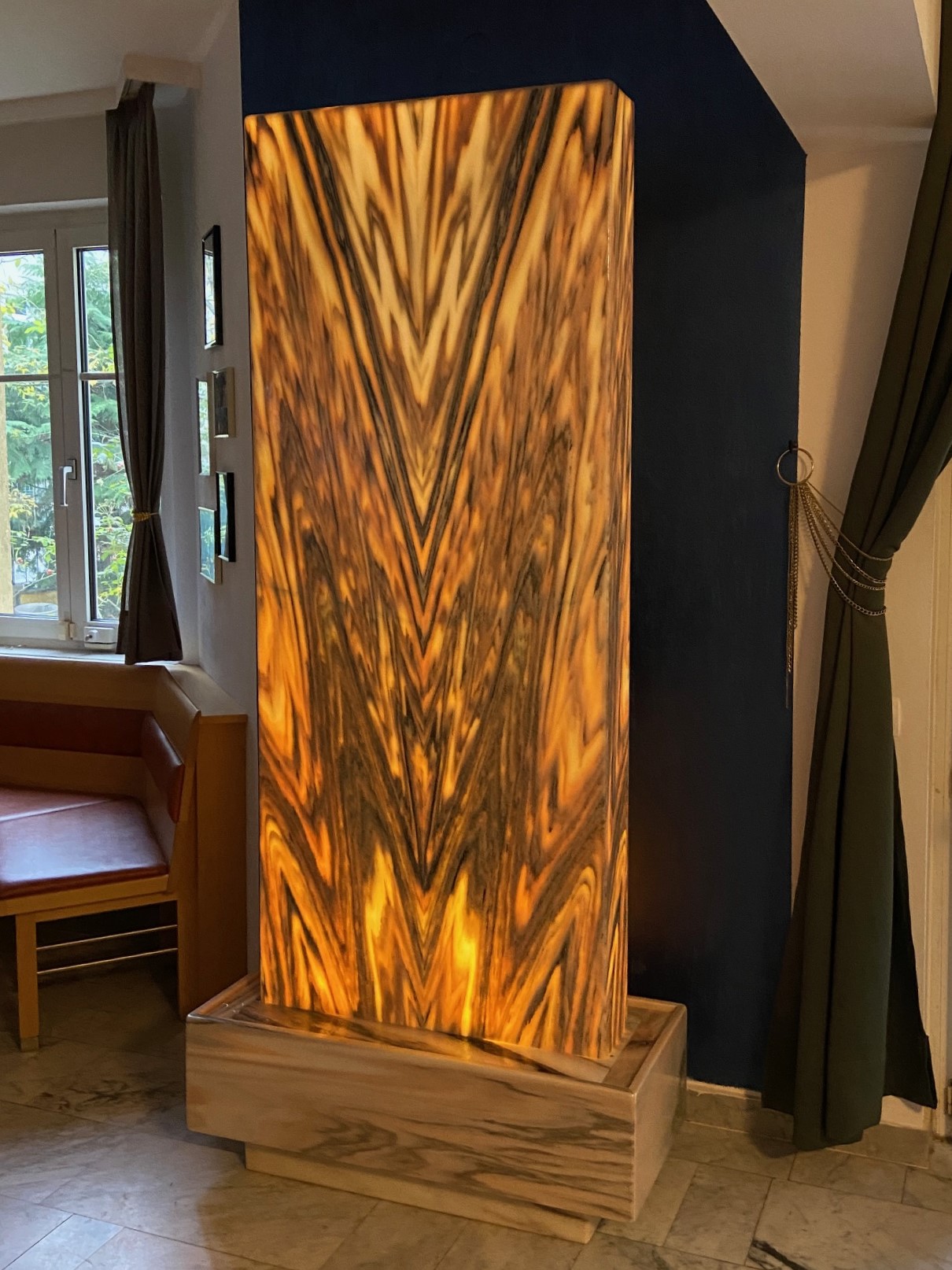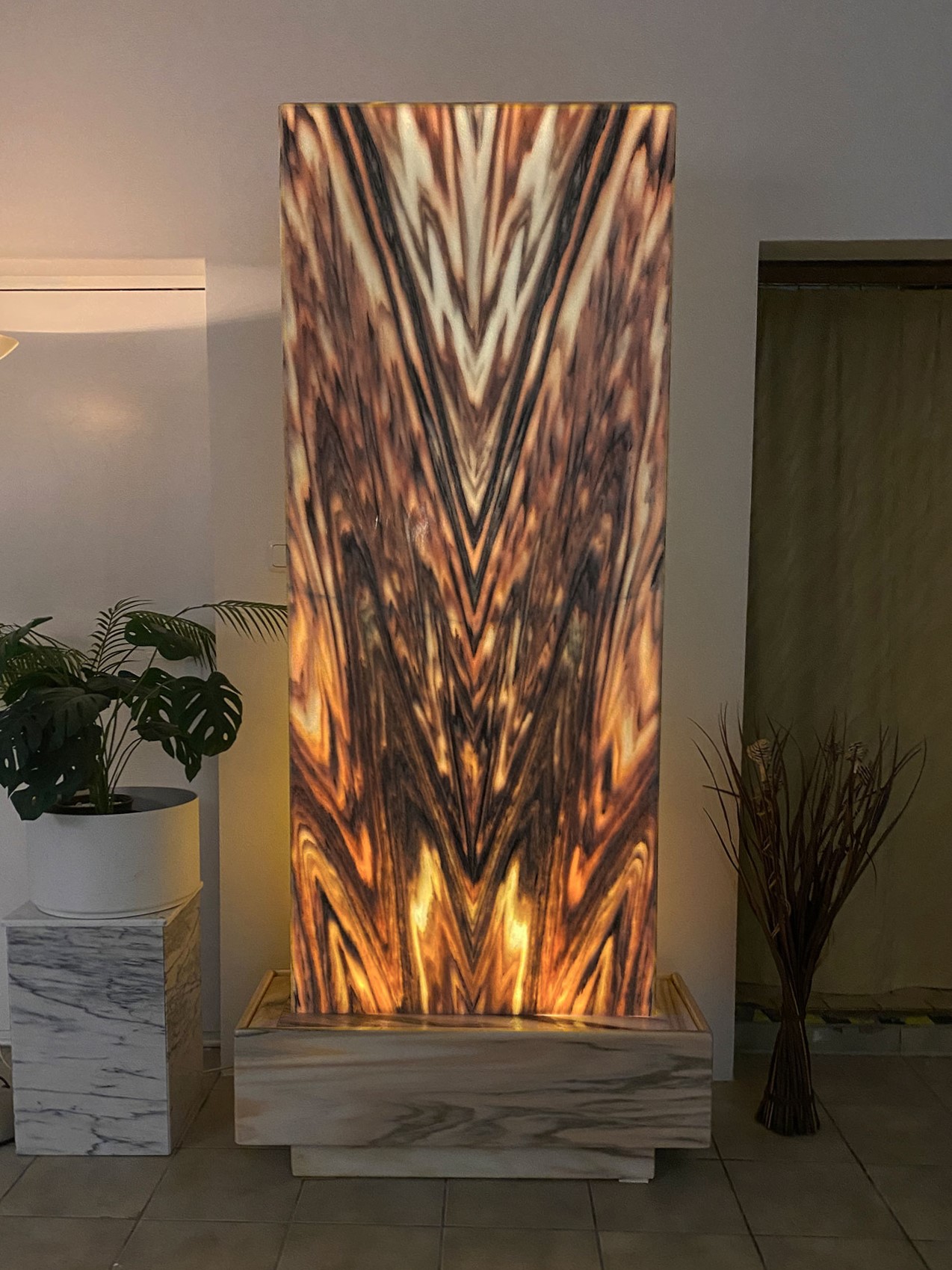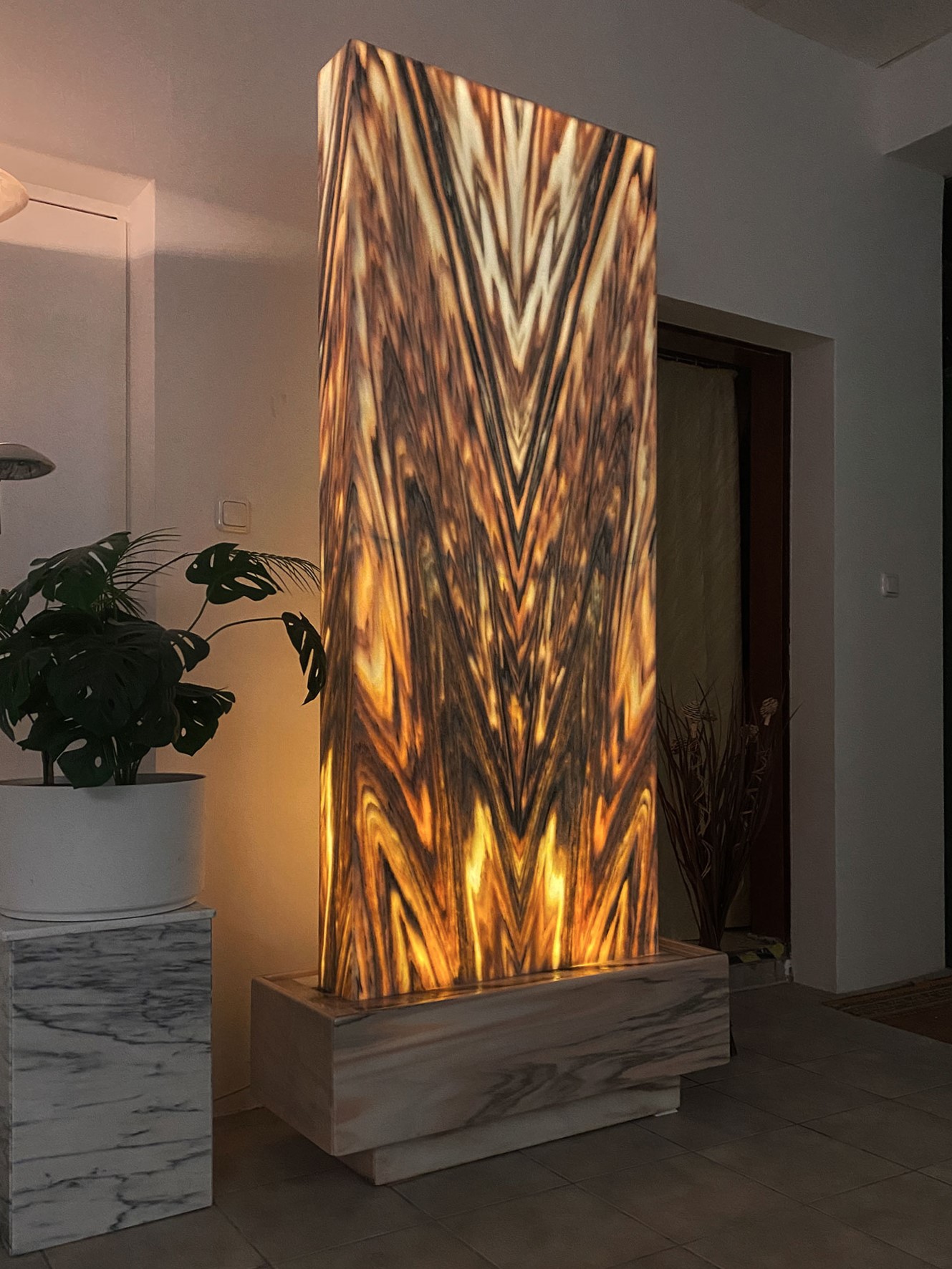 Ein monumentaler & von innen beleuchteter Zimmerbrunnen aus dem edlen Material “Sölker Marmor” aus Österreich. Durch seine überwältigende Größe ist dieser Lichtbrunnen ein großartiger Blickfang für größere Räume wie Eingangshallen, Rezeptionen oder hohe Wohnsalons.