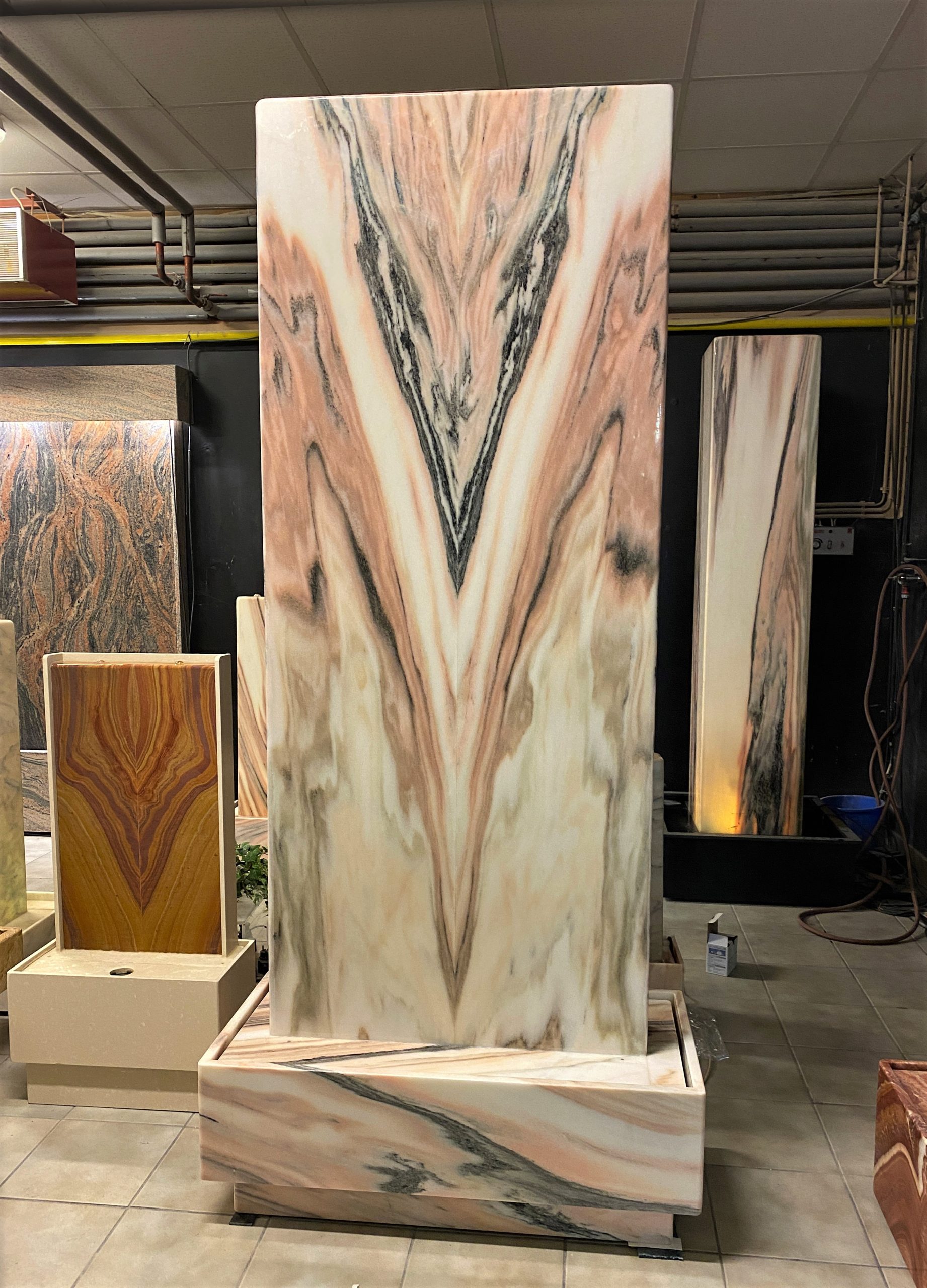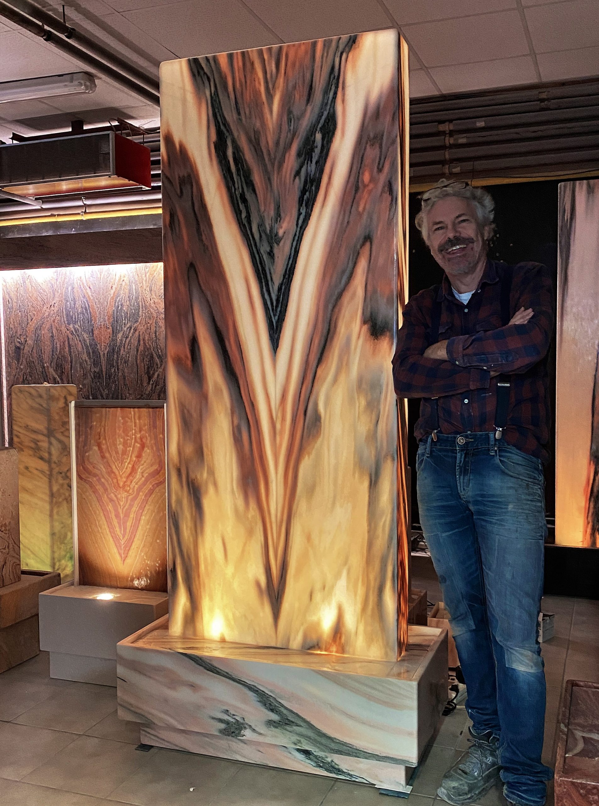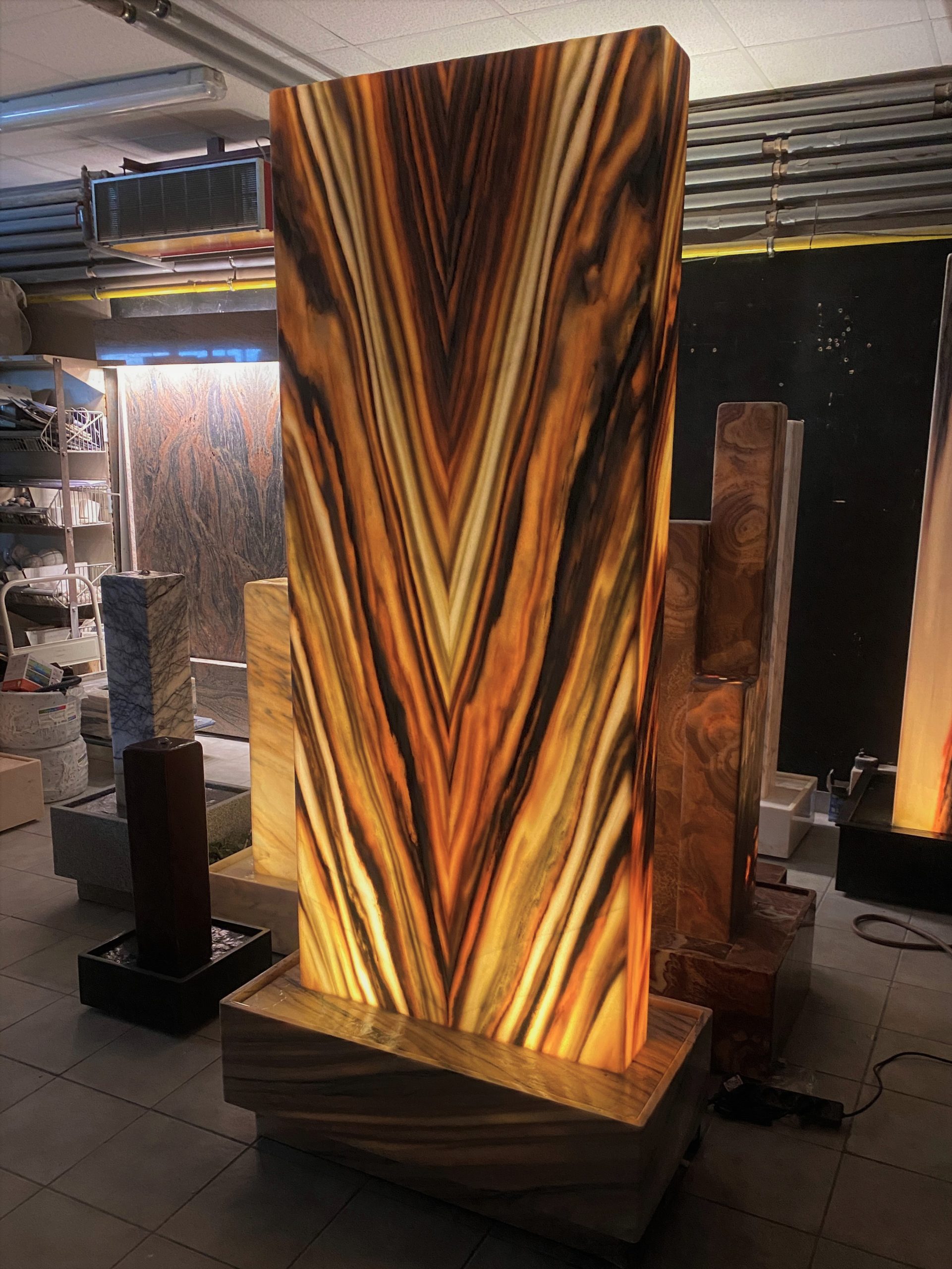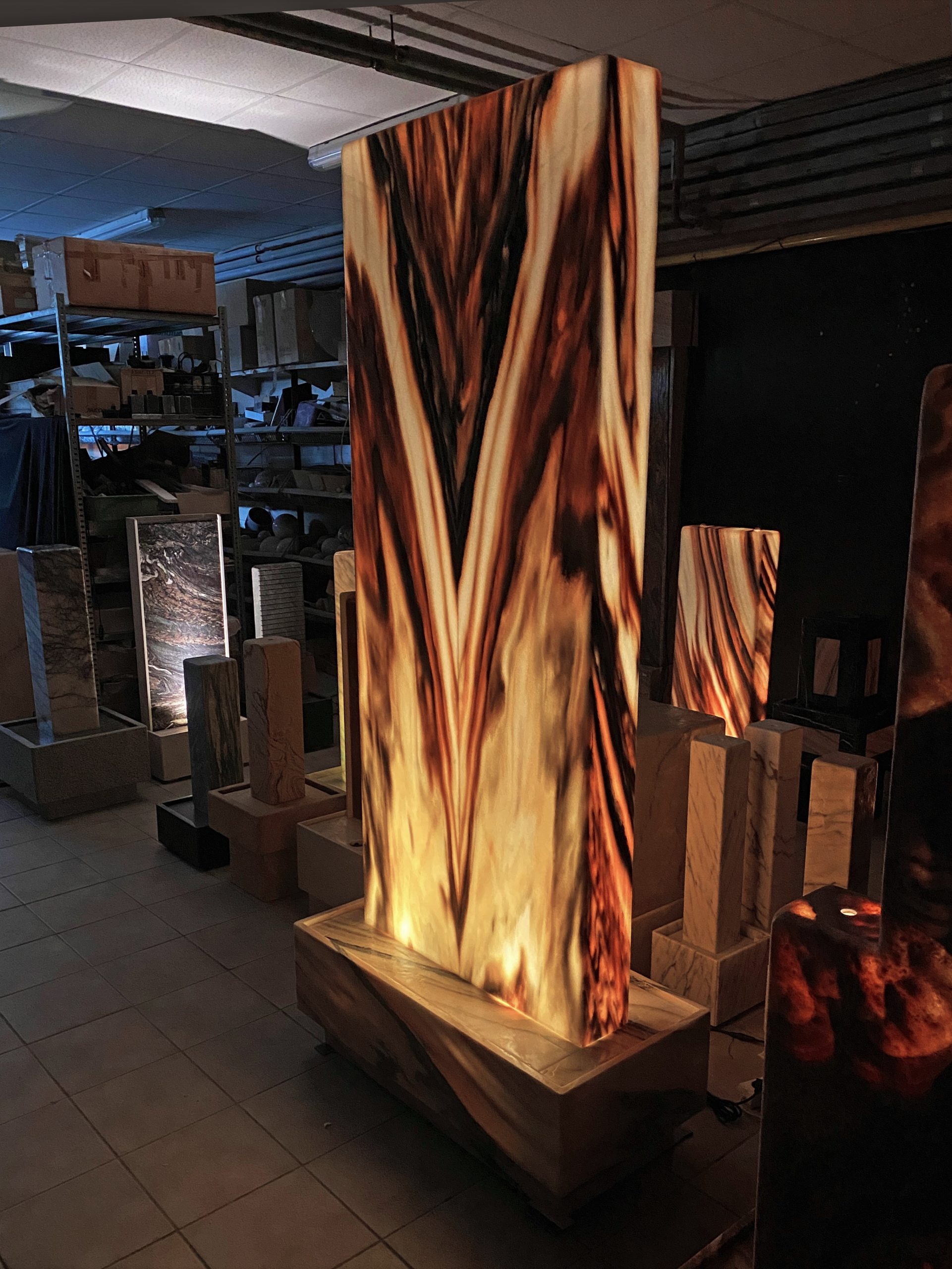 Ein monumentaler & von innen beleuchteter Zimmerbrunnen aus dem edlen Material “Sölker Marmor” aus Österreich. Durch seine überwältigende Größe ist dieser Lichtbrunnen ein großartiger Blickfang für größere Räume wie Eingangshallen, Rezeptionen oder hohe Wohnsalons.