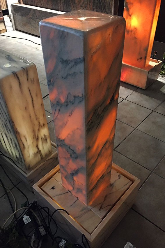 Naturstein-Hohlstele aus dem harmonischen Marmor “Rosa Portogalla” (Herkunft: Portugal); von innen beleuchtet!