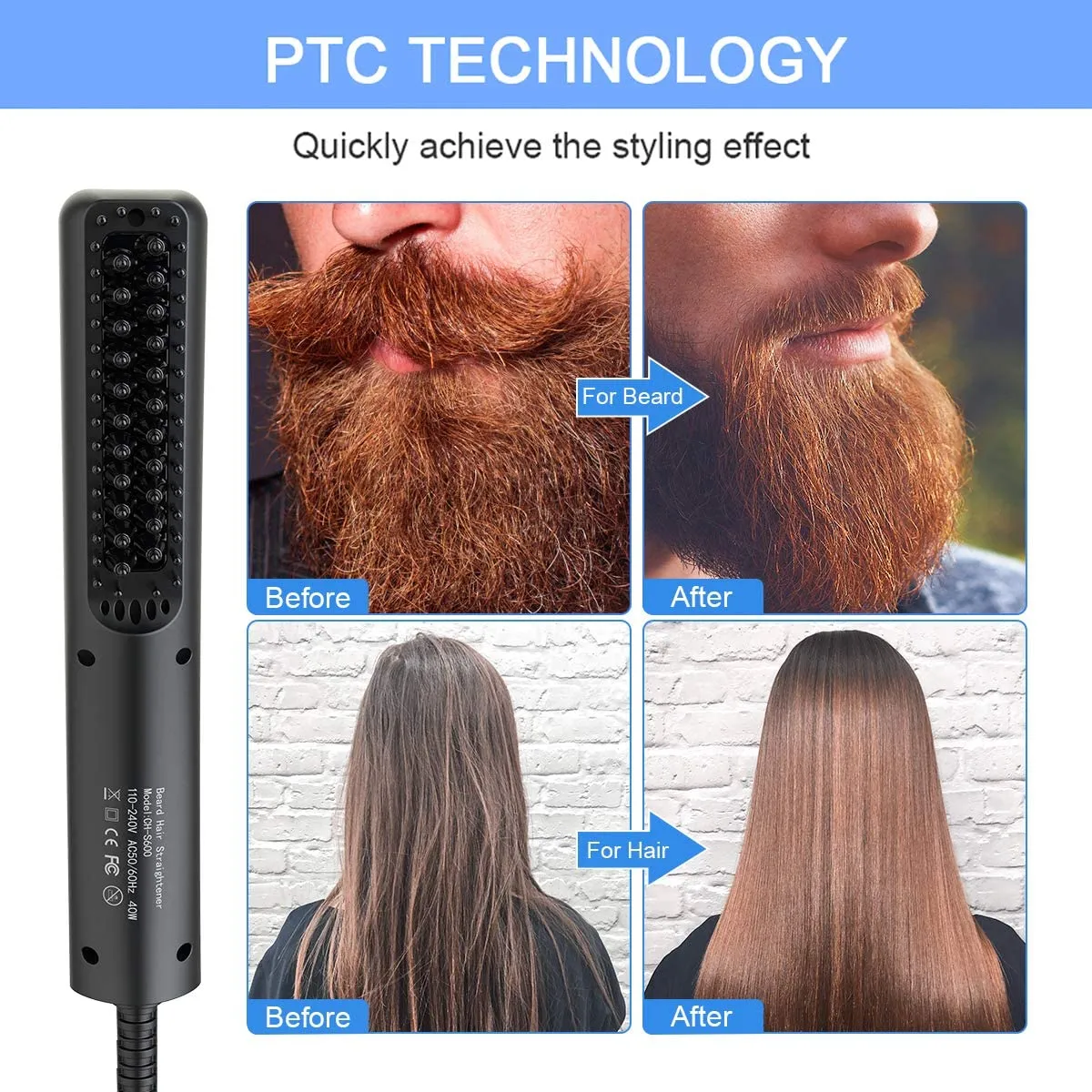 [/vc_column_text][vc_column_text]Glatter und Glänzender Bart – Die Bart Glättbürste ist mit einem fortschrittlichen PTC-Heizelement ausgestattet, erzeugt innerhalb von 30 Sekunden schnell und stabil Wärme, glättet Bart und Haare und sorgt für ein natürliches, elegantes und glänzendes Erscheinungsbild. Befreien Sie sich von unordentlichem Bart, steigern Sie Ihre Schönheit und Ihr Selbstvertrauen.