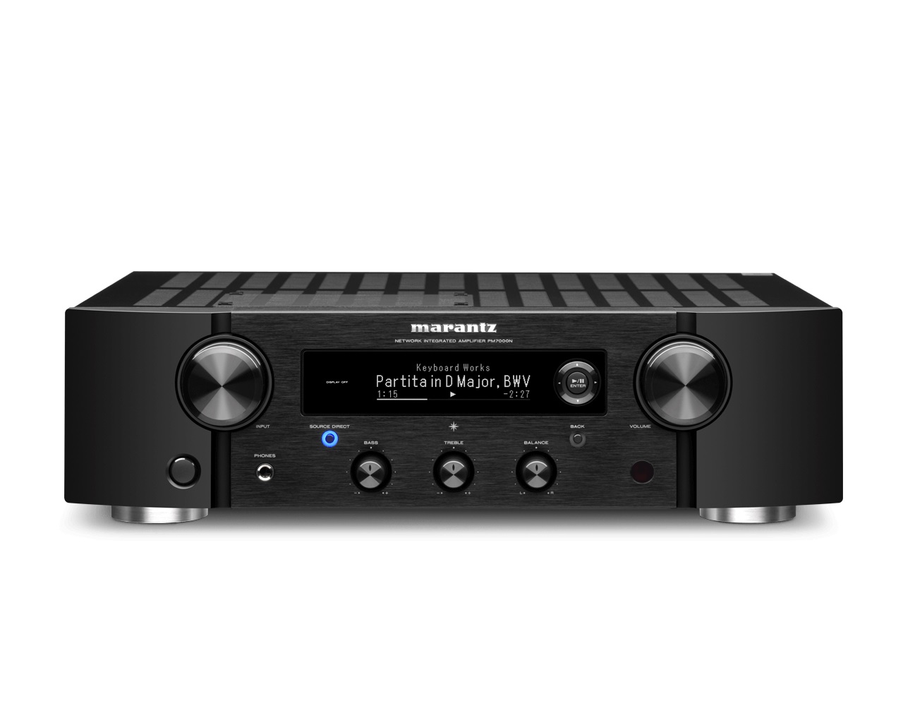 Entdecken Sie den PM7000N, den ersten Hi-Fi-Vollverstärker von Marantz mit Stromgegenkopplung und HEOS Built-in. Er ist die perfekte Wahl für Audiophile und enthält hochwertige Audiokomponenten, Marantz eigene HDAMs, einen Ringkerntransformator sowie eine stabile und ultraschnelle Stromversorgung. Streamen Sie Ihre Lieblingsmusik und genießen Sie hochauflösende digitale Audiodateien mit 24 Bit/192 kHz oder DSD 5.6. Über den Phono-MM-Eingang können Sie Ihre Lieblings-Schallplatten in einer nie dagewesenen Soundqualität anhören. Die digitalen Eingänge unterstützen PCM-Audio und decodieren neben MP3 auch verlustfreie digitale Dateien wie ALAC, FLAC und WAV mit bis zu 24 Bit/192 kHz für ein hochauflösendes Klangerlebnis. USB-A und HEOS Built-in ermöglichen zudem die Wiedergabe von DSD-Dateien mit 2,8 und 5,6 MHz. Streamen Sie Ihre Lieblingssongs kabellos über AirPlay2 und Bluetooth und steuern Sie den Verstärker über die HEOS App oder mit den Sprachassistenten Apple Siri, Google Assistant und Amazon Alexa.