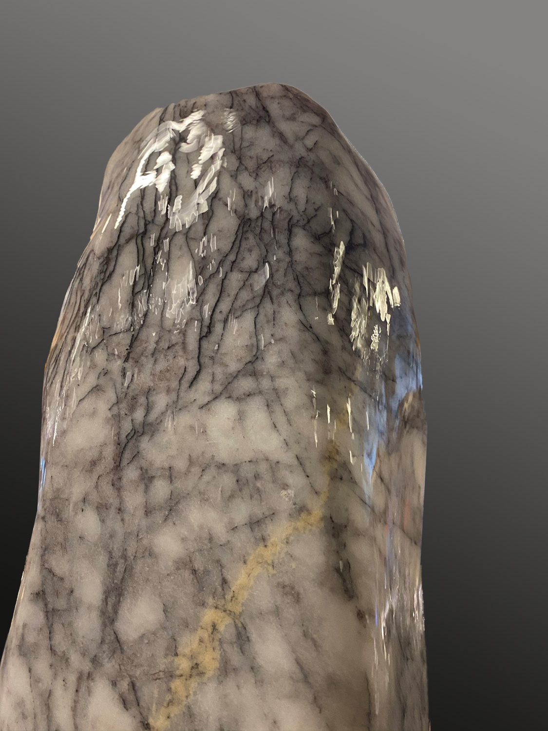 Bei diesem Objekt wurde der Quellstein aus dem hochwertigen Marmor “Purple Wave” in aufwändiger Handarbeit glatt geschliffen.