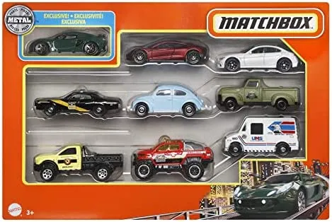 Rennflitzer, schwere Arbeitspferde, Spezialfahrzeuge und mehr. Es ist ein Matchbox 9-Car-Geschenkset, und es ist bereit für Kinder mit Strom zu versorgen, direkt aus der Box. Holen Sie sich einen für sofortigen Spass, zu Hause oder unterwegs.