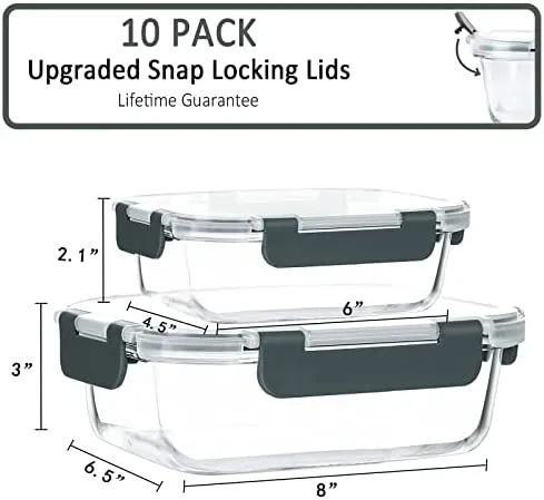 • 20-teiliges Set: Enthält 10 Glasbehälter für Lebensmittel und 10 passenden Deckel. Im Set enthaltene Grössen/Formen: rechteckiger Behälter: 5x370ml,5×1040.mlideal für die Aufbewahrung und den Transport von Mahlzeiten, auch bei Picknicks und Camping. Sie sind auch ideal für den Einsatz im Restaurant, Zuhause, im Büro, in der Schule und im Fitnessstudi