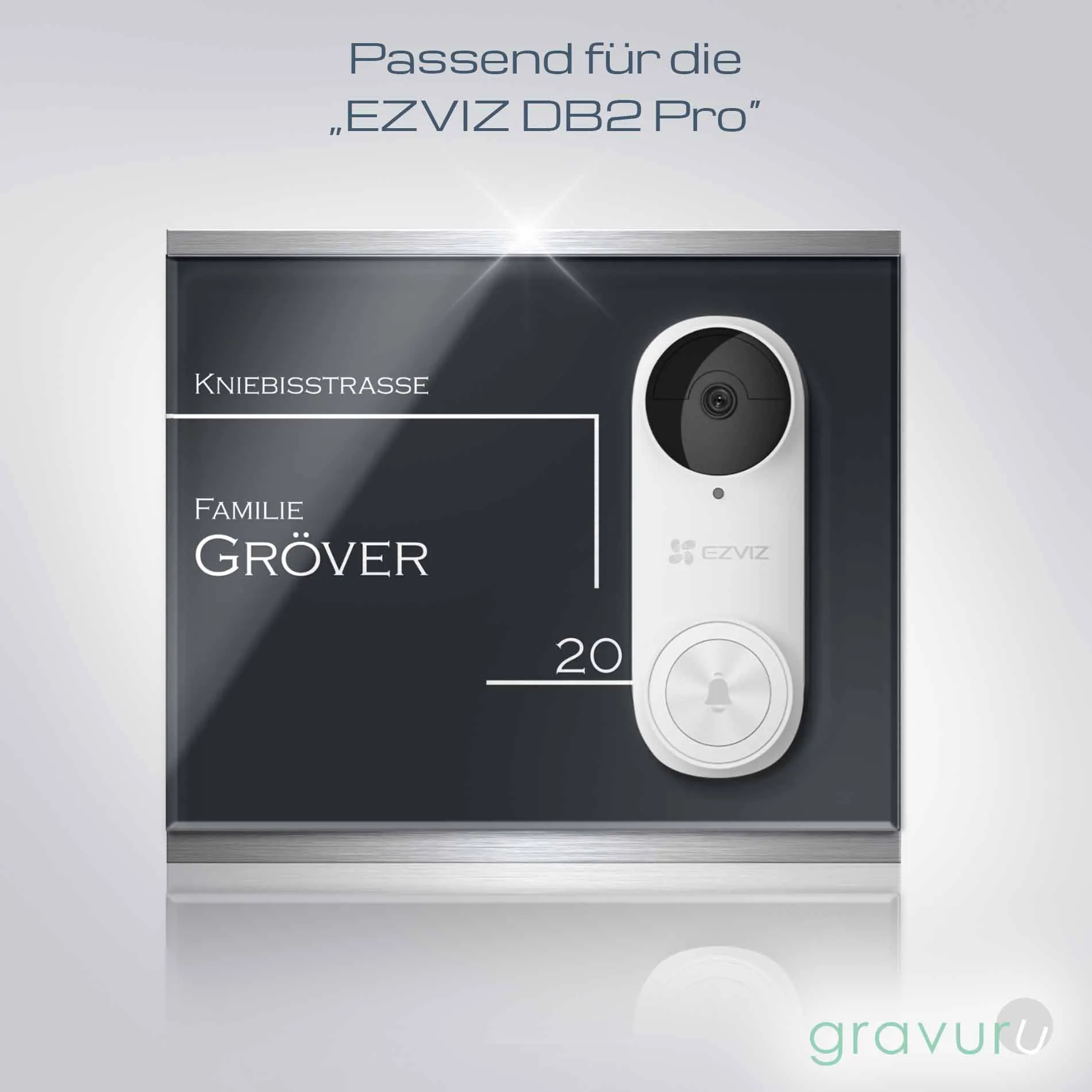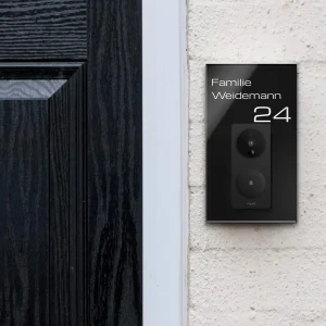 Du suchst eine stilvolle Möglichkeit um Deine Funkklingel im Hauseingang zu befestigen? Gestalte eine Klingelplatte für Deine Funkklingel und personalisiere sie genau nach Deinen Wünschen. Unsere hochwertigen Funkklingelschilder aus massivem V2A Edelstahl und hochglänzendem Acrylglas machen Deine Doorbell Türklingel zu einem echten Hingucker im Eingangsbereich.