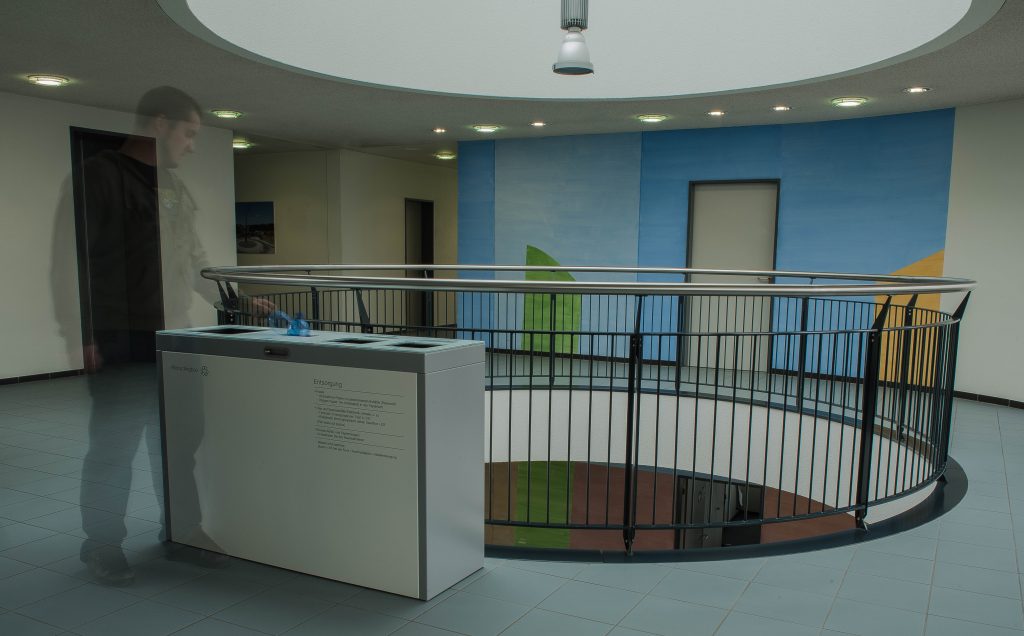 Die Oberflächen vom Multilith 3-EU Wertstoffbehälter aus Glas und Aluminium, unterstützen eine saubere Umgebung. Die ESG Glasoberfläche kann leicht gereinigt und desinfiziert werden. Der Innenraum des Abfallbehälters lässt sich ebenfalls einfach reinigen, weil alle Bauteile gut geordnet und mit zugänglichen Flächen versehen sind. Hygiene soll auch beim Abfall ein Thema sein.