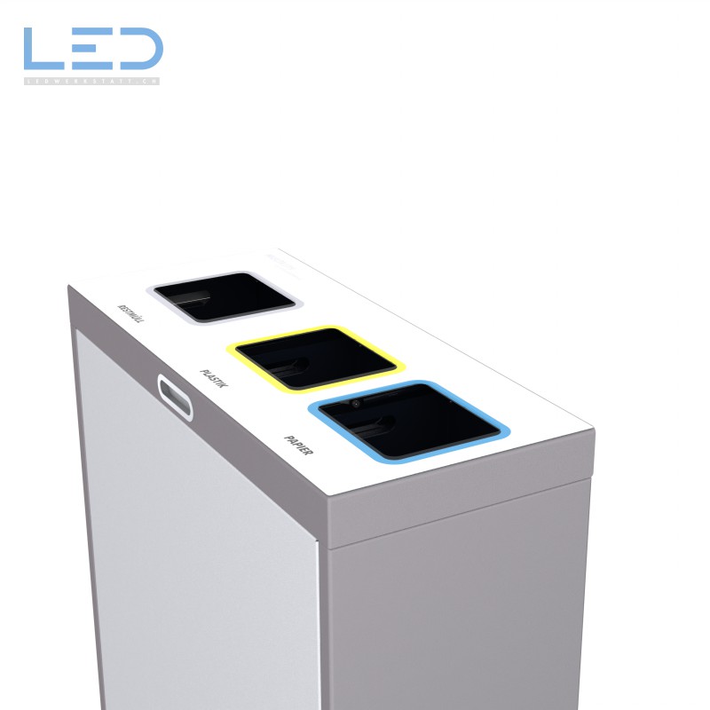 Die Multilith 3-EU Recyclingstation passt perfekt in Büros und Empfangsbereiche, um Abfalltrennung stilvoll umzusetzen. Er ist ebenfalls geeignet für überdeckte Aussenbereiche.