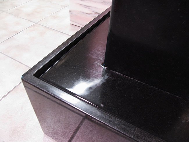 Dieser elegante und schlichte Brunnen aus dem afrikanischen Granit Nero Assoluto ist aufgrund seiner Größe ein effektiver Luftbefeuchter und fügt sich durch sein unaufdringliches Design perfekt in jeden Raum ein.