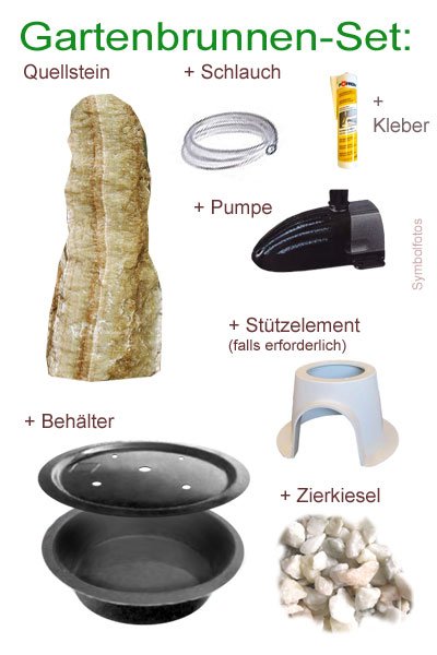 Sie können diesen Quellstein auch einfach als Gartenbrunnen Komplettset zum Preis von € 1.027,– bestellen. (Wählen Sie hierzu einfach oben die Option im dropdown Menü)