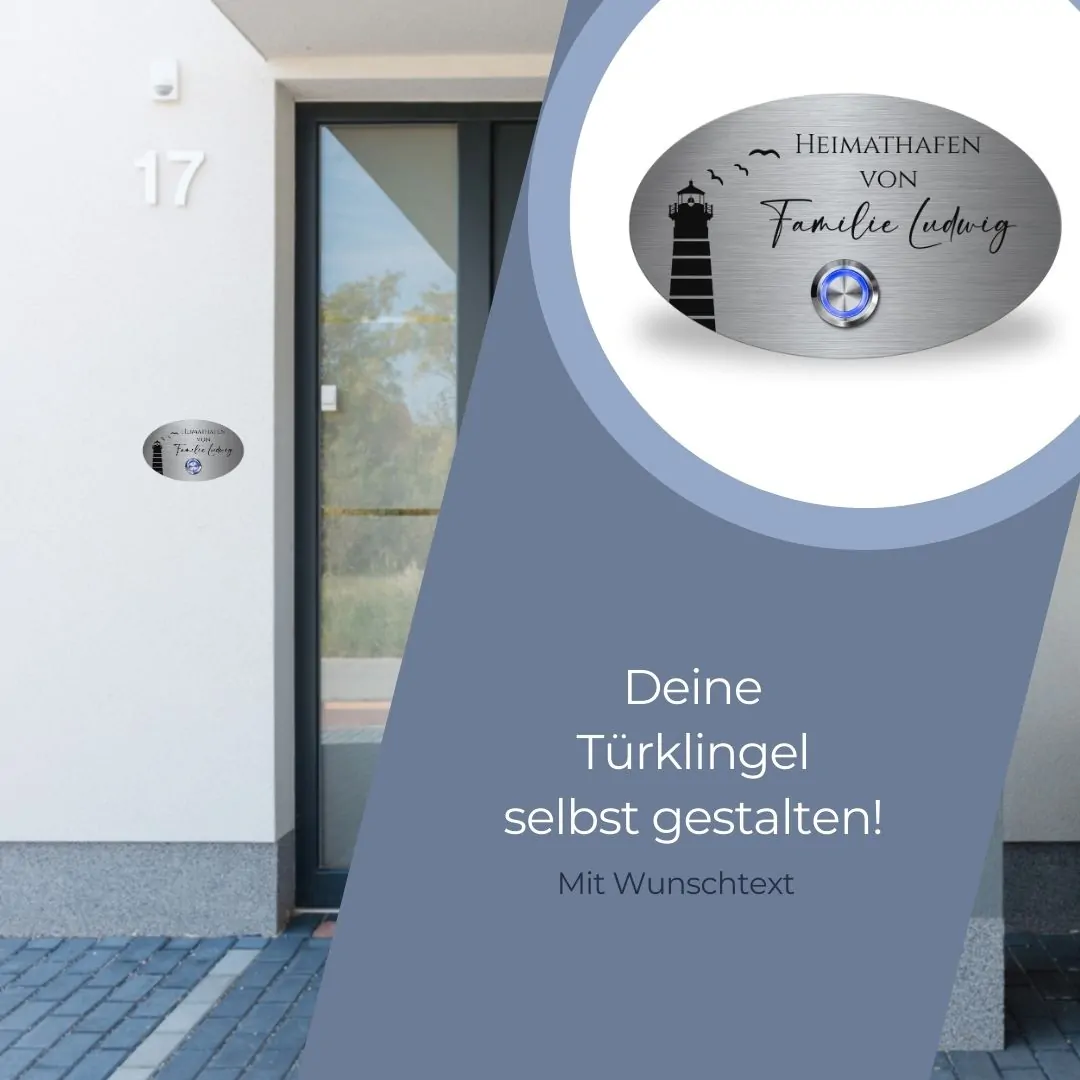 Schreibe die erste Bewertung für „Ovale Klingel aus Edelstahl mit Gravur und LED-Taster 13×8 cm“