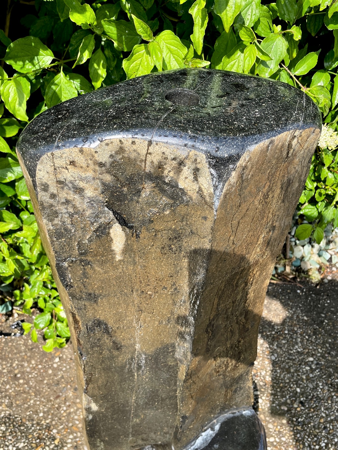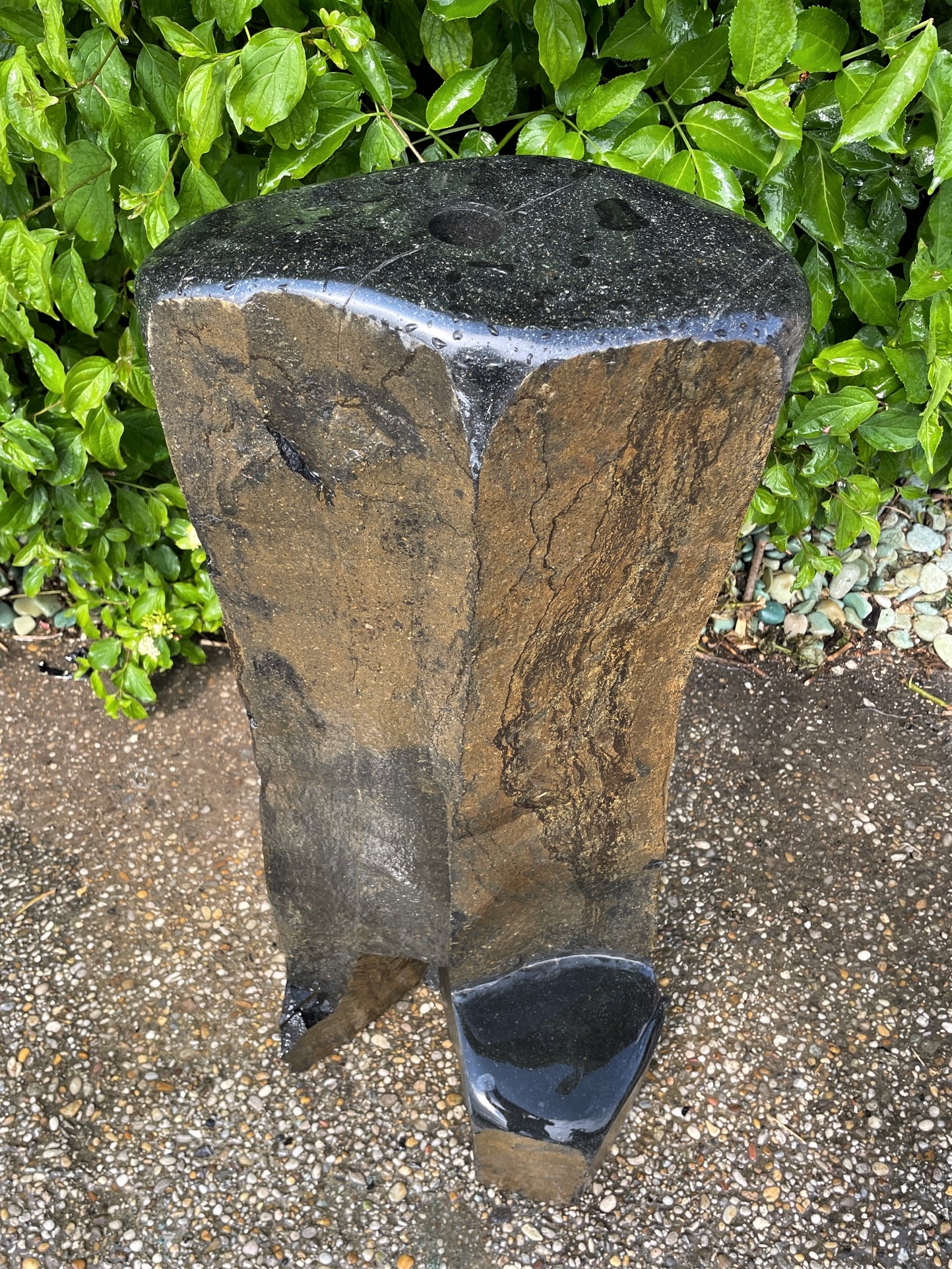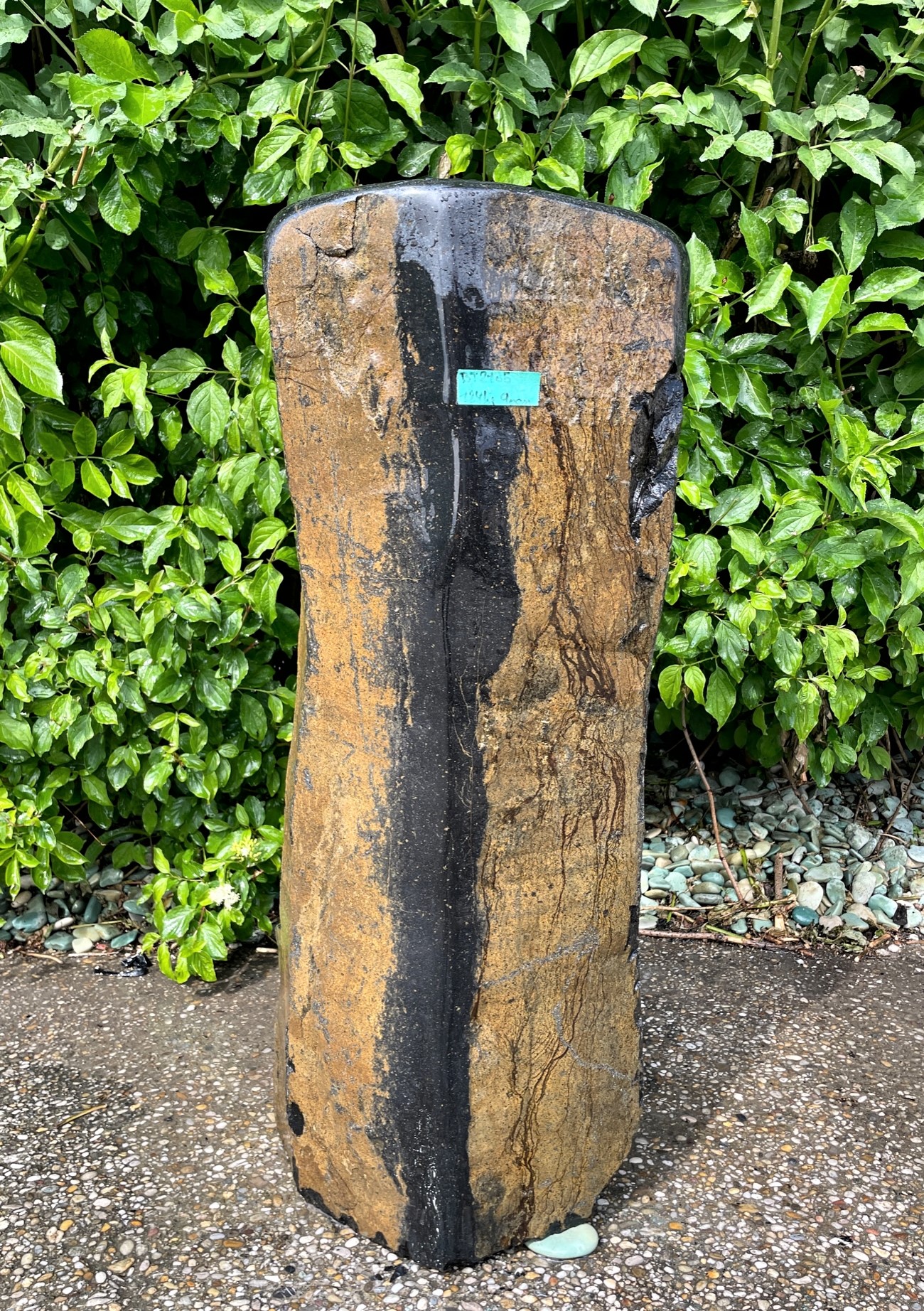 Dieser schwarze Basalt mit teilweise naturbelassen bräunlichen Flächen ist ein echter Blickfang und fügt sich perfekt in jedes Ambiente ein. Teilweise wurde die Oberfläche dieses Hartgesteins in aufwendiger Handarbeit glatt geschliffen, was ihn besonders elegant macht.