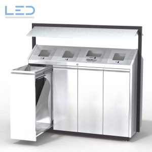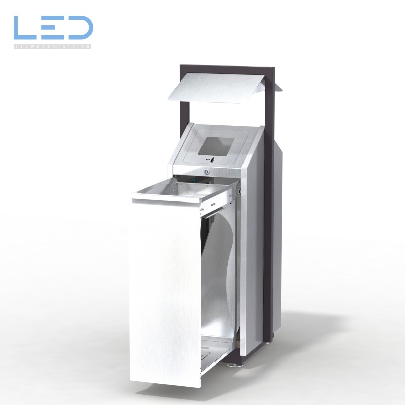 Die Oberfläche aus Edelstahl reflektiert die Farben der Umgebung und ordnet sich so Stylvoll unter. Der geschliffene Edelstahl ist leicht zu reinigen und zu desinfizieren. Der Innenraum des Wertstoffbehälter lässt sich ebenfalls gut reinigen, da alle Bauteile geordnet und mit zugänglichen Flächen versehen sind.