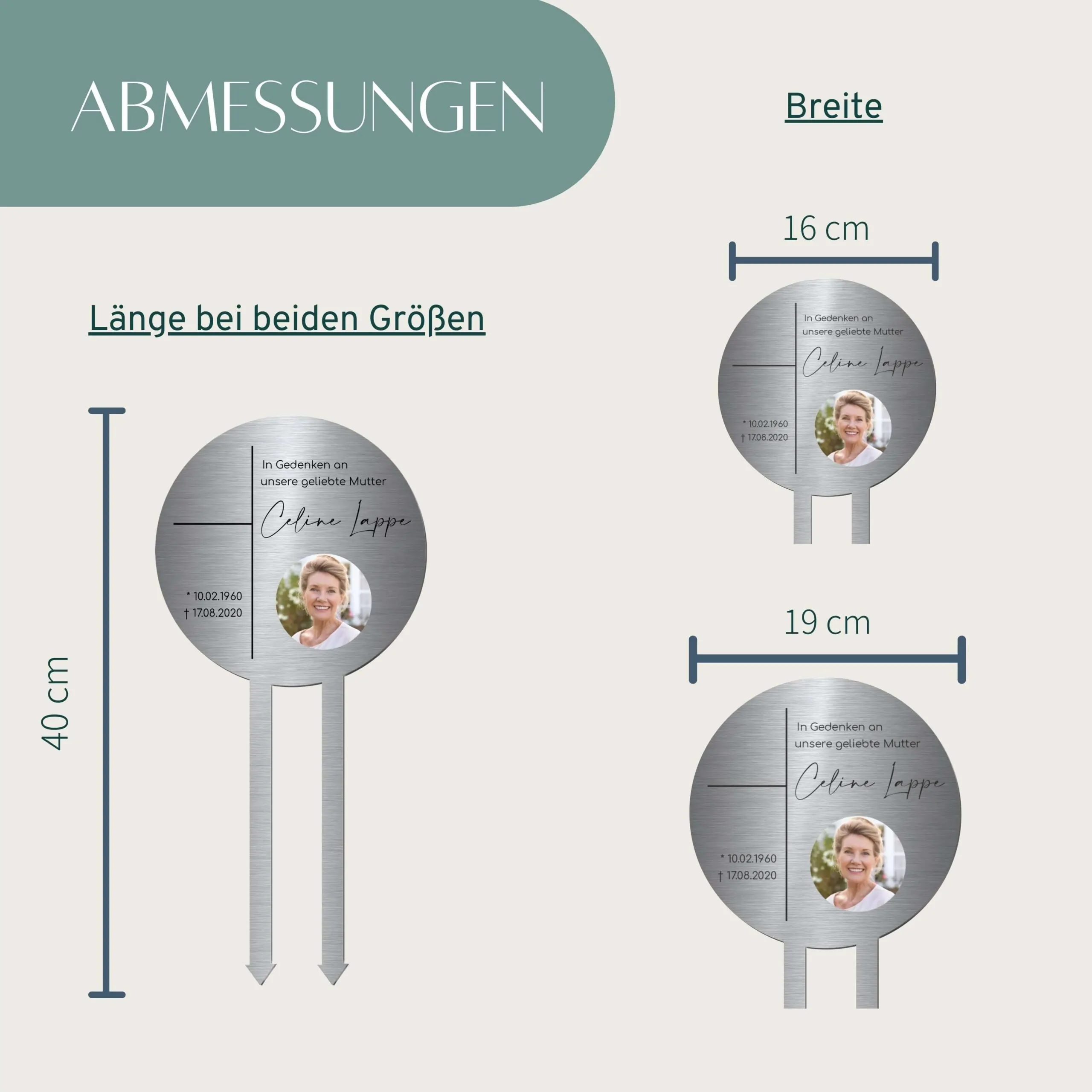Beachte: Jeder Grabstecker wird individuell für Dich angepasst und hergestellt. Bitte beachte, dass anpassbare, bzw. personalisierbare Produkte grundsätzlich vom Umtausch ausgeschlossen sind.
