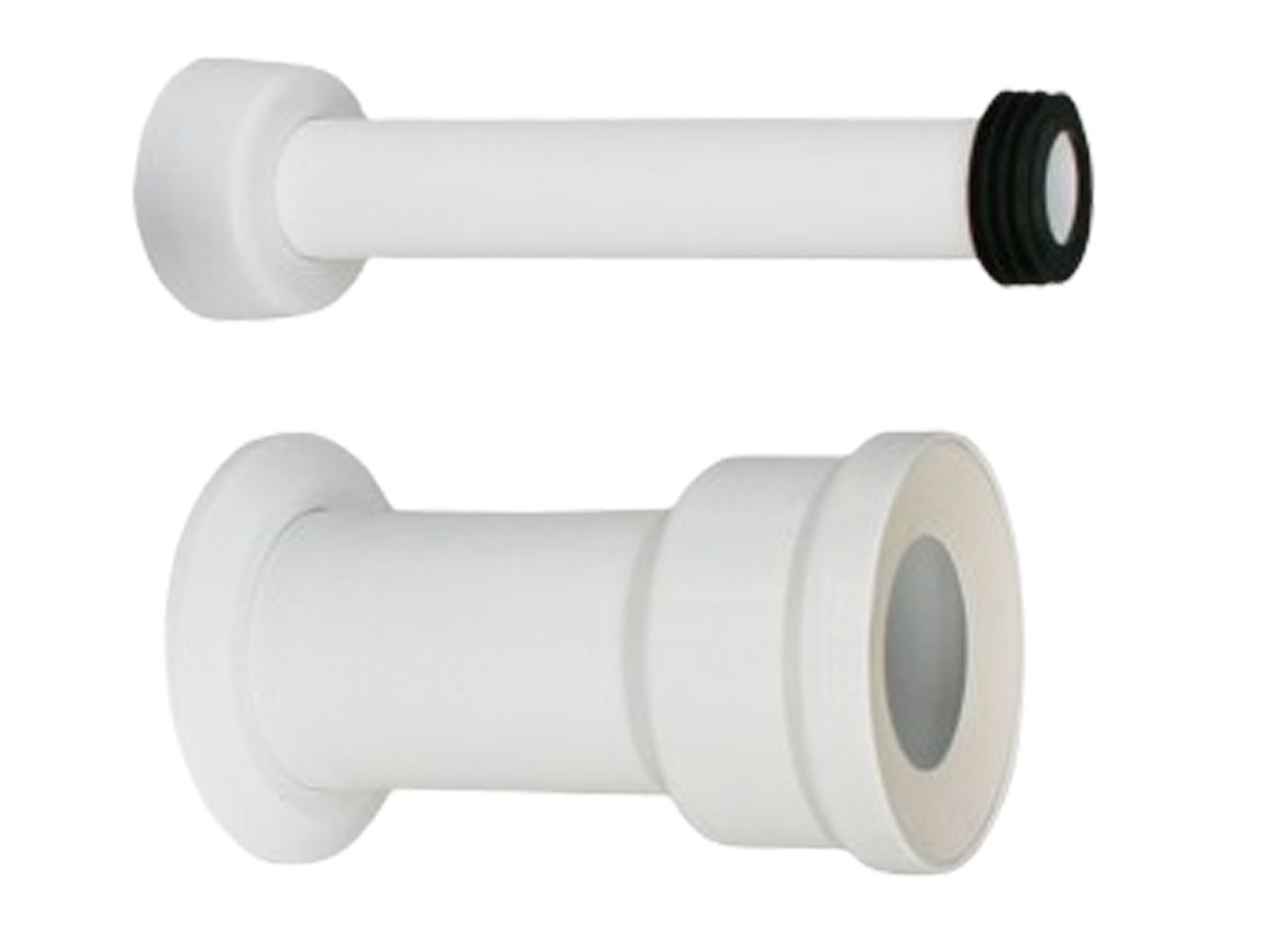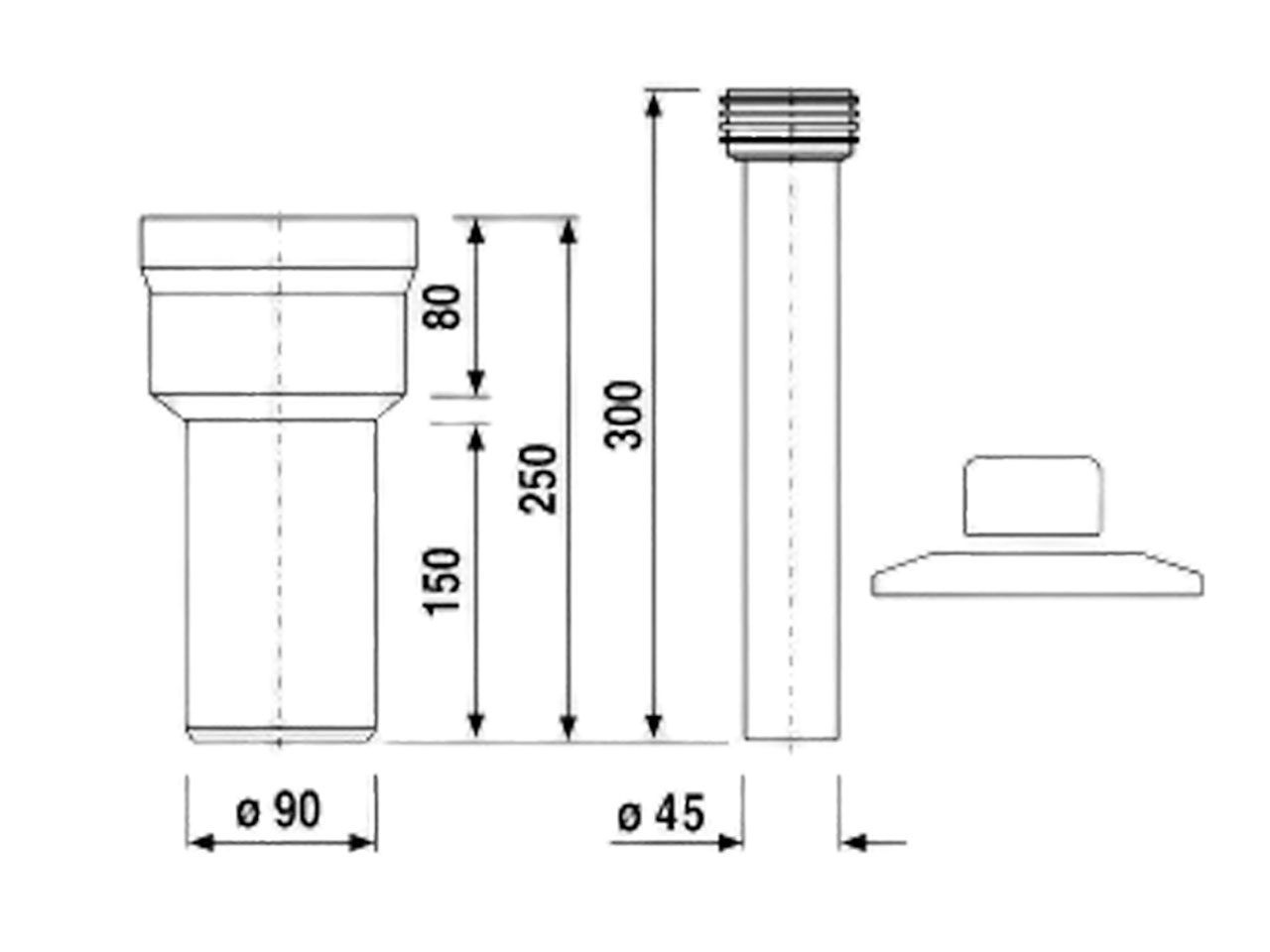 - Bestehend aus: WC-Anschlussstutzen DN 90 x 250 mm, mit Flachrosette DN 90, WC-Anschlussrohr Ø 45 x 300 mm, Spülrohrverbinder und Abdeckrosette