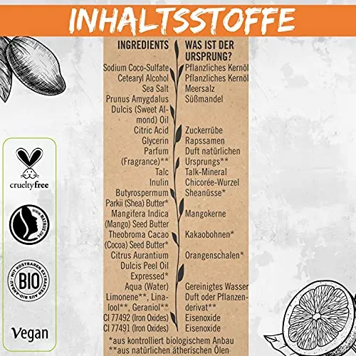 - Das Bio-Orangenextrakt weist einen hohen Vitamin- und Flavonoidgehalt auf, was ihm eine antioxidative Wirkung verleiht. Außerdem wirkt es adstringierend, ist aber gleichzeitig mild genug für jeden Hauttyp und pflegt die Haare glänzend.
