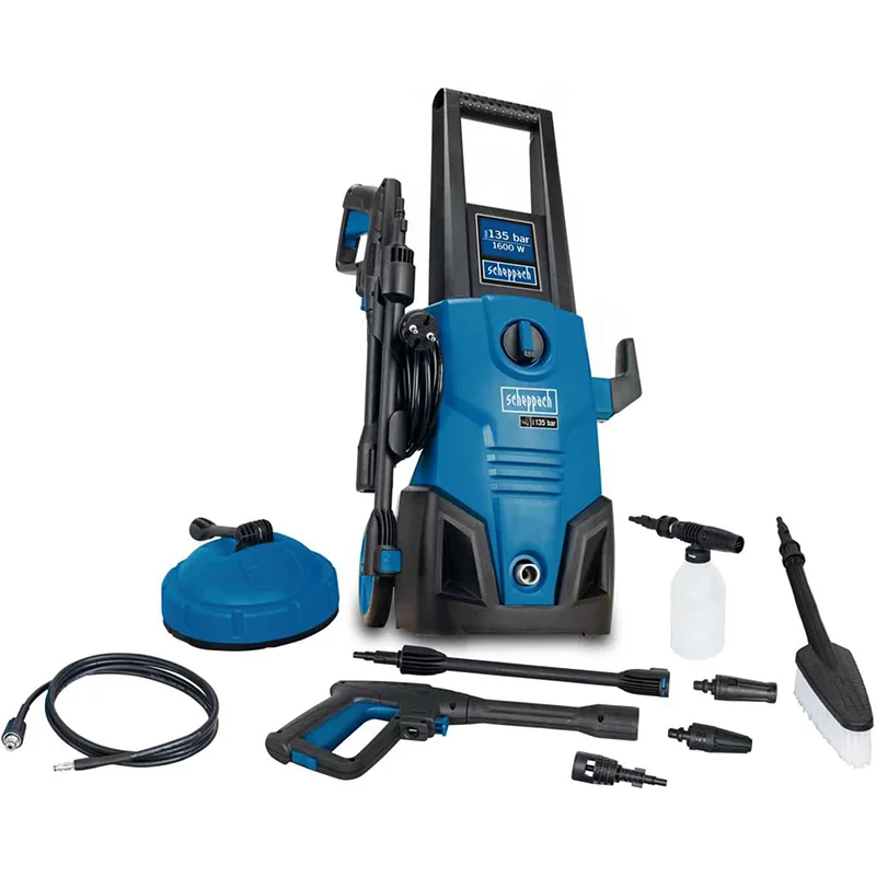 Scheppach Hochdruckreiniger HCE1650 | 135 bar | 5m Schlauch | 408 L/h | Quick Connect | Reinigungsmitteltank | 9-tlg. Zubehör