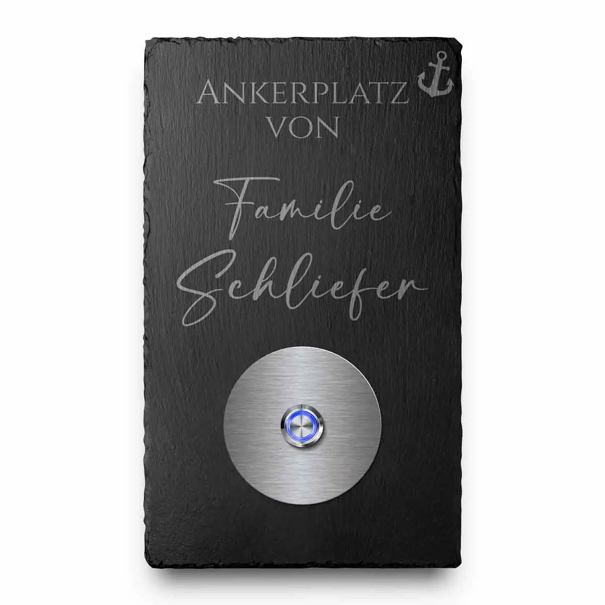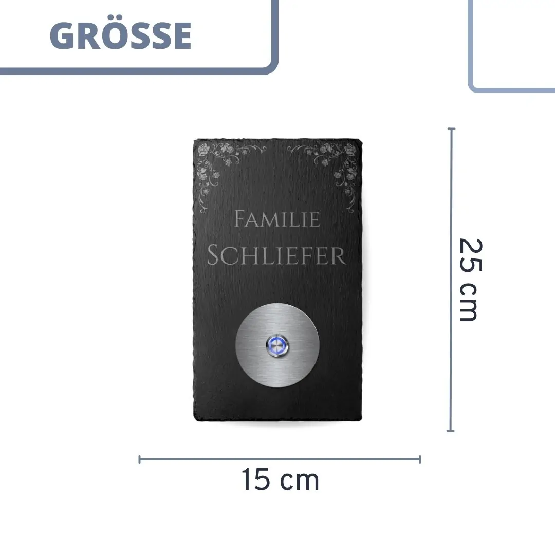 Klingel aus Markenschiefer mit Wunschgravur und LED Taster / Modell Schliefer-sch 15×25 cm