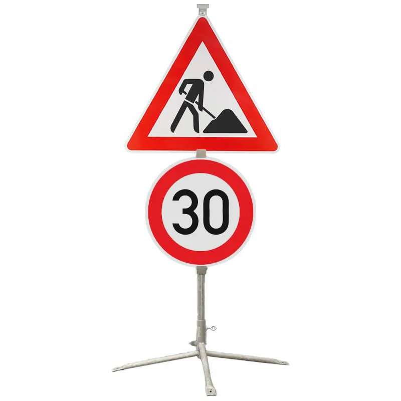 Mit dem leichten Schilderständer stellen Sie Verkehrszeichen für die kurzfristige und schnelle Beschilderung von Gefahren- und Arbeitsstellen optimal auf.