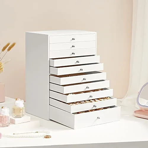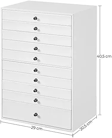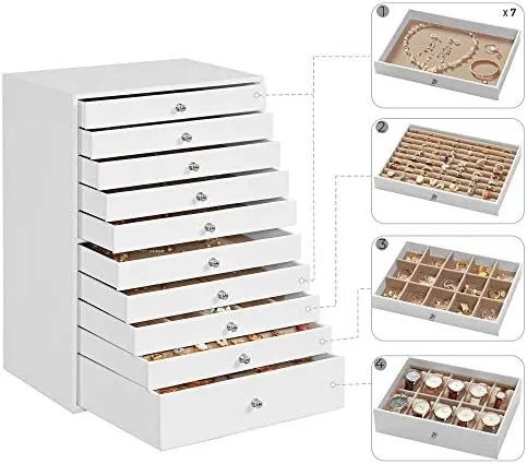 - Dieser edle Schmuckkoffer überzeugt nicht nur durch sein elegantes Design, sondern auch durch seine Funktionalität. 10 Schubladen bieten verschiedene Ablagemöglichkeiten für Ihre Ringe, Armbänder, Ketten, Uhren und vieles mehr -ordentlich und platzsparend. Zudem schützt er auch Ihre wertvollen Lieblingsstücke vor Staub und Kratzern.