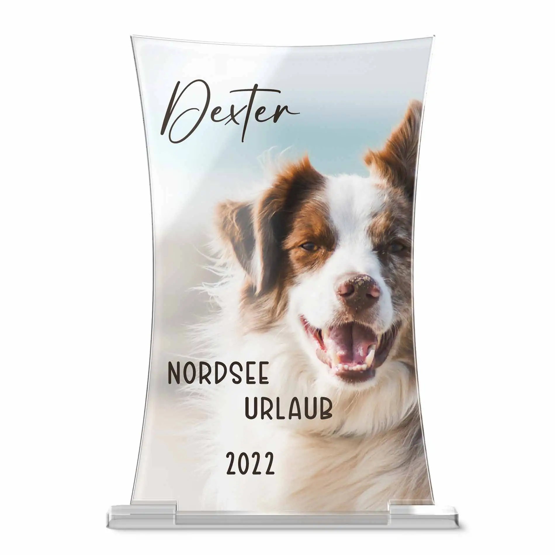 Material: Hochglanz Acrylglas mit UV Druck – Größe: 10 x 16 cm – Stärke: 5mm – inklusive Stand Fuß aus klarem Acrylglas (Einstecksystem)