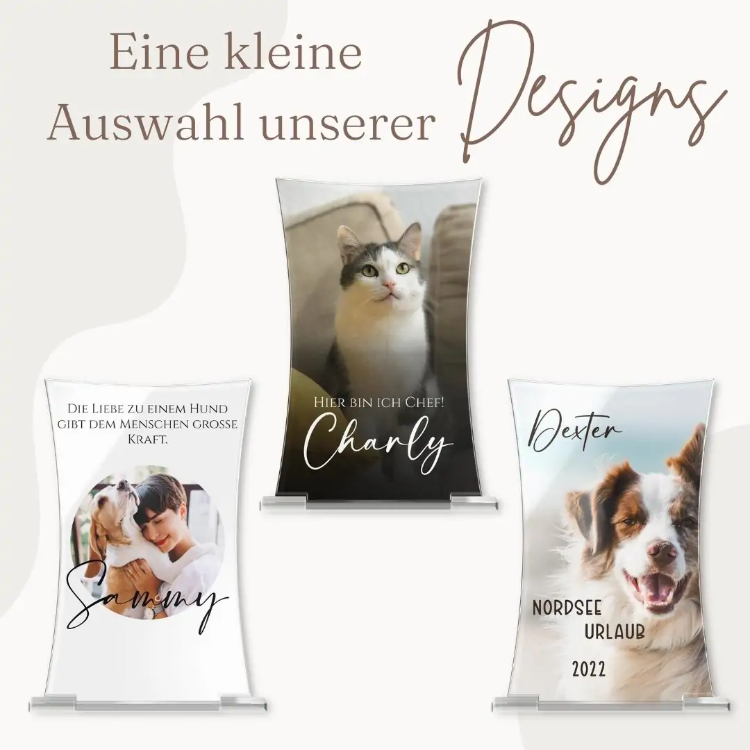 Gestalte Dir bei uns ein gefühlvolles Standbild ganz nach Deinen persönlichen Wünschen und Vorstellungen. Lade hierfür ein Bild von Dir und Deinem Partner, Deinem letzten Urlaub oder Deinem vierbeinigen Weg Begleiter hoch und hauche so Deinem märchenhaften Fotogeschenk Leben ein. Runde das Design mit einem persönlichen Schriftzug in einer Farbe und Schriftart Deiner Wahl ab und verschönere es optional auch mit einem unserer Motive. Dank der kinderleichten Bedienung unseres Online Konfigurators gelingt die Personalisierung im Handumdrehen. Die berührungsaktiven Hilfslinien sowie die Zentrierungsfunktion helfen dir bei der optimalen Ausrichtung von Bildern, Text und Motiven. Verschaffe Dir dank der Sofortanzeige von Deinem Standbild aus Acrylglas schon online ein detailliertes Bild und bessere kleinere Eingabefehler sofort aus. Dadurch können wir Dir immer ein Produkt fertigen, welches exakt Deinen Vorstellungen entspricht.