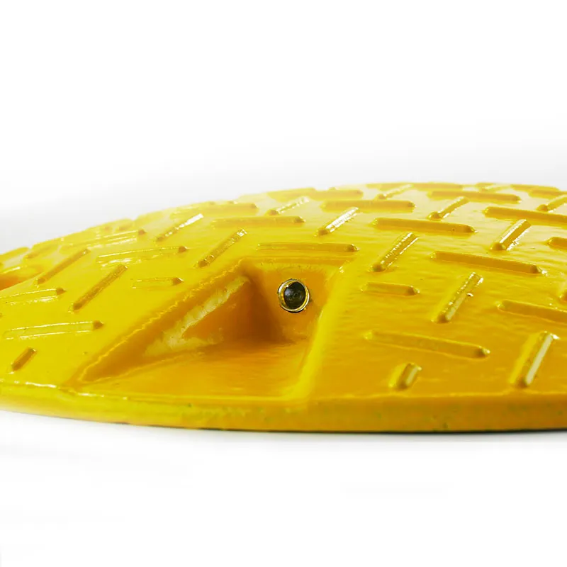 Bei einem Durchmesser von 425 mm und einer Scheitelhöhe von 50 mm hat der runde Tempostopper ein Gewicht von 5,6 kg. Die profilierte Oberfläche wirkt rutschhemmend. In Signalgelb und ausgestattet mit 4 Reflektoren ist der runde Geschwindigkeitshemmer schon von Weitem und auch im Dunkeln sehr gut zu sehen.