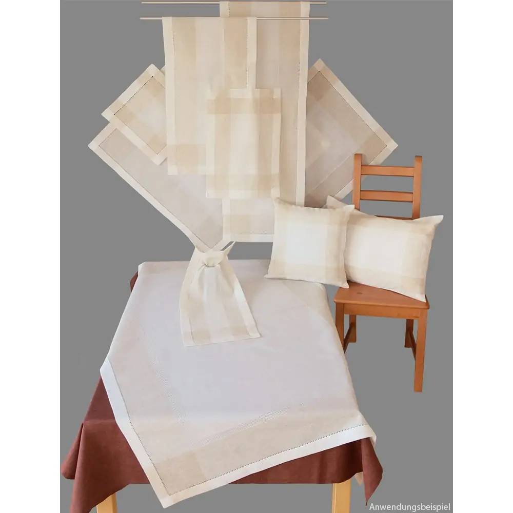 Die elegante Tischdecke ALMA in hochwertiger Leinenoptik bringt zeitlose Schönheit in dein Zuhause. Die dezente Struktur, kombiniert mit einer feinen Durchbruchbordüre, verleiht jedem Tisch eine stilvolle und natürliche Eleganz – perfekt für klassische Wohnräume, den Landhausstil oder moderne Einrichtungskonzepte. Hergestellt aus einer pflegeleichten Mischung aus 80 % Polyester & 20 % Leinen vereint diese Tischdecke die besten Eigenschaften beider Materialien. Sie bietet die natürliche Optik & Haptik von Leinen, ist aber zugleich strapazierfähig, formstabil & leicht zu reinigen. Dadurch bleibt sie auch nach mehreren Wäschen wunderschön und eignet sich ideal für den täglichen Gebrauch oder festliche Anlässe. Mit einer Größe von 110 x 110 cm passt diese Tischdecke perfekt auf kleine bis mittlere Tische oder kann als dekorativer Überwurf für größere Tischdecken genutzt werden. Sie schafft eine warme, einladende Atmosphäre und ist eine stilvolle Ergänzung für jedes Zuhause. Ob für ein festliches Dinner, ein gemütliches Frühstück oder als elegante Tischauflage – diese Tischdecke verleiht jedem Wohnbereich eine gehobene Note und sorgt für eine ansprechende Tischgestaltung.