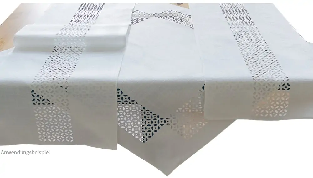 - Tischläufer / Mitteldecke mit Verzierungen und durchbrochenen Elementen als Motiv – wollweißer Läufer mit tollen Aussparungen
