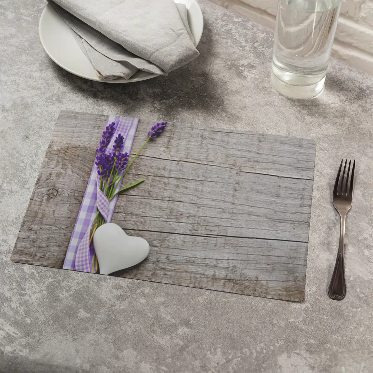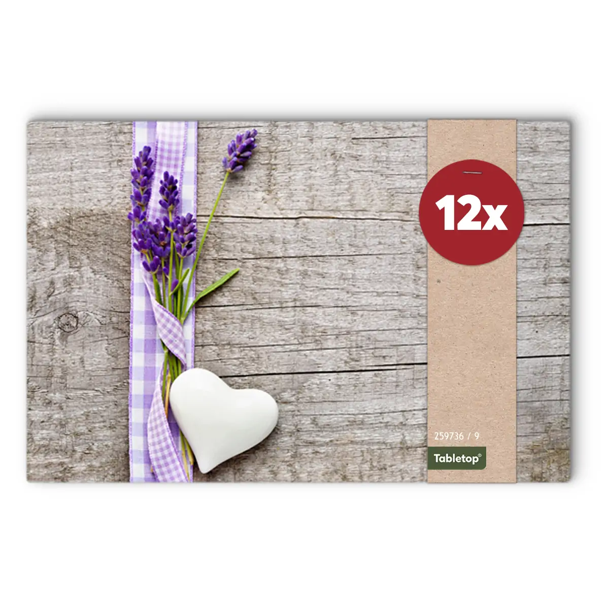 Tischsets Platzsets MOTIV Lavendel auf Holzbrett 12 Stk. Kunststoff abwaschbar je 43,5×28,5 cm