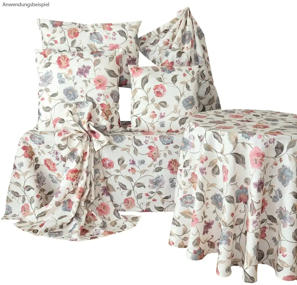 Die elegante runde Tischdecke DANJA mit floralem Muster bringt nostalgischen Landhaus-Charme in dein Zuhause. Die detailreiche Ornamentik in sanften Farben fügt sich perfekt in klassische & moderne Einrichtungsstile ein und sorgt für ein stilvolles Ambiente. Gefertigt aus hochwertigem Polyester, ist die Tischdecke besonders pflegeleicht, strapazierfähig & formstabil. Sie schützt deinen Tisch vor Kratzern & Flecken und bleibt dank ihrer knitterarmen Eigenschaften immer in Bestform. Auch nach mehreren Wäschen behält sie ihre brillanten Farben & die geschmeidige Haptik. Mit einem Durchmesser von 130 cm passt diese Tischdecke ideal auf runde Esstische, Kaffeetische oder Beistelltische. Sie eignet sich sowohl für den Alltag als auch für besondere Anlässe und verleiht deinem Zuhause eine warme, elegante Atmosphäre. Ob als stilvolle Esszimmerdeko oder als charmantes Geschenk – mit dieser Tischdecke schaffst du ein gemütliches & harmonisches Wohngefühl.