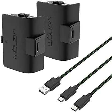 Entfernen Sie die Notwendigkeit, ständig Ihre Controller-Batterien mit teuren Einwegartikeln zu wechseln. Unsere praktischen wiederaufladbaren Akkus sind passgenau für Ihren Xbox-Controller und bieten bis zu 15 Stunden Spielzeit mit einer vollen Ladung. Unsere preissparenden Doppelpacks bieten 2 x 850 mAh wiederaufladbare Akkus sowie ein USB-Ladekabel, mit dem beide Akkus gleichzeitig aufgeladen werden können. Das 3 Meter lange Kabel sorgt dafür, dass Sie volle Flexibilität haben, wo Sie aufladen. Die Akkus können auch aufgeladen werden, während sie in den Controller gelegt werden, sodass Sie weiterhin spielen können, während der Strom wiederhergestellt wird. Auch in Weiss erhältlich, passend zu Ihrem Controller.