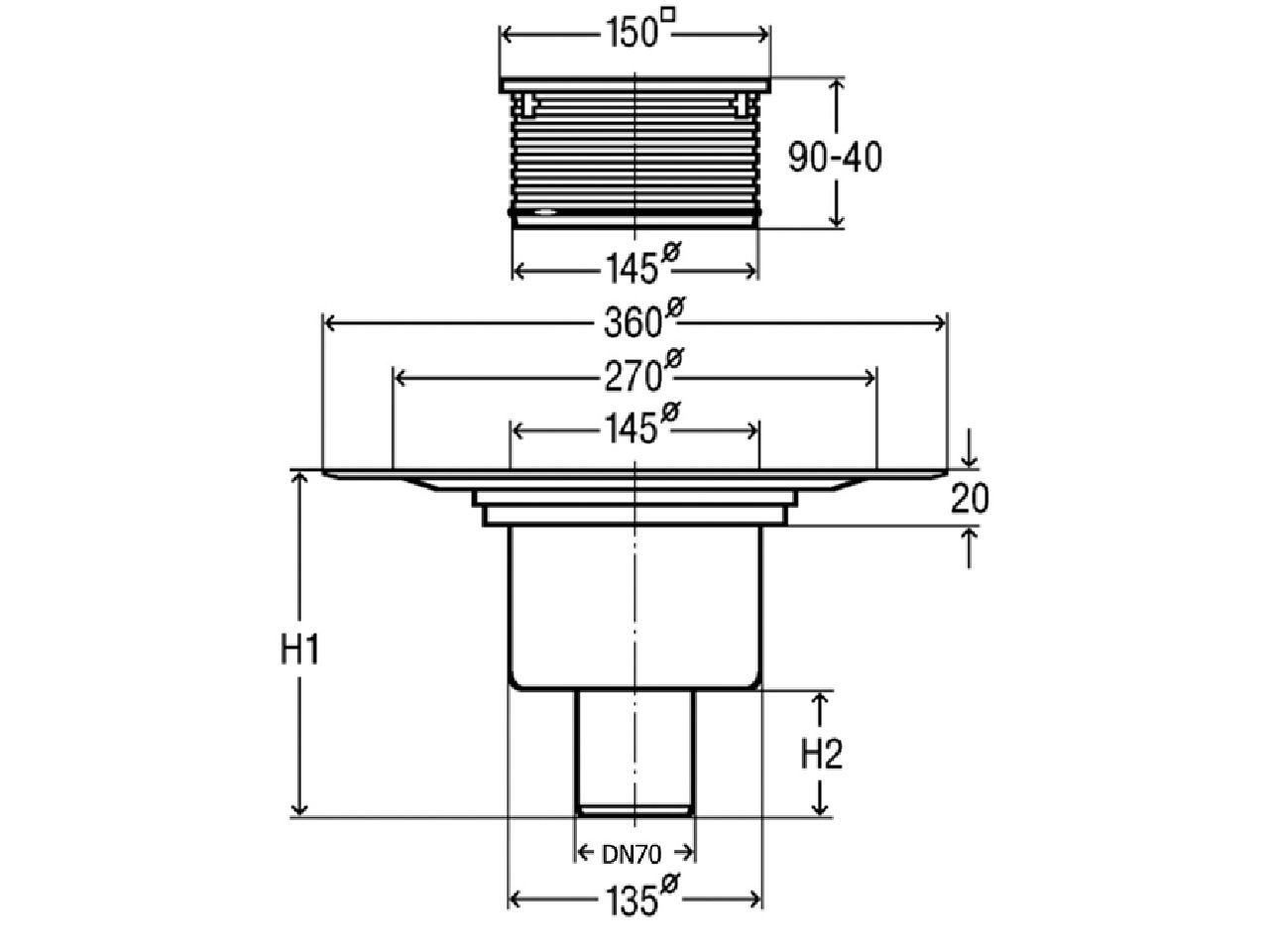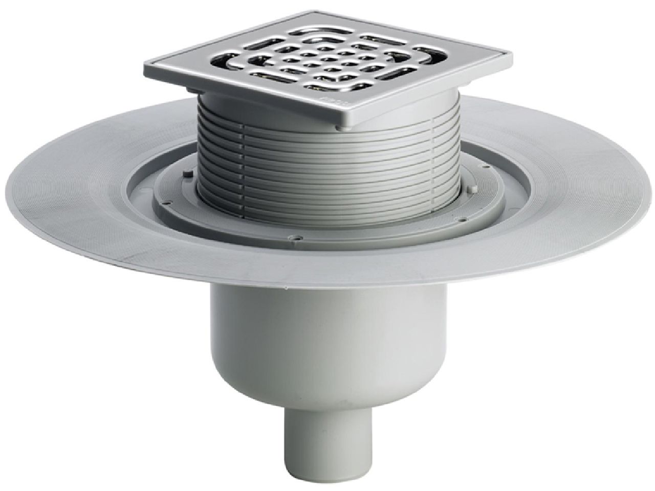 - Dreh- und höhenverstellbarer Aufsatz mit Rost aus Edelstahl, herausnehmbarer Geruchverschluss und Abdichtungsflansch
