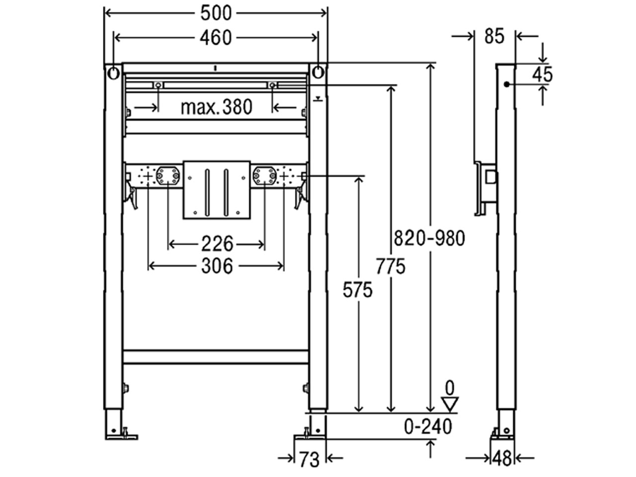 Höhe: 820 mm bis 980 mm (+/- 240 mm Einstellbereich)