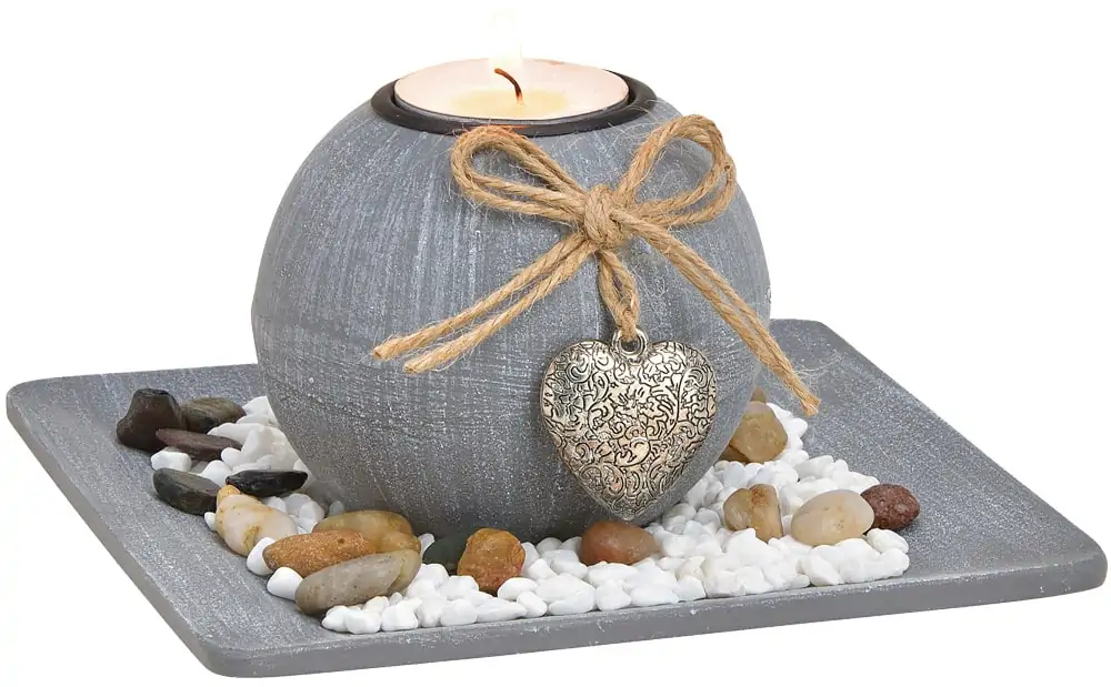 - Lieferumfang: 1 Set inkl. 1 Teelichthalter, Tablett & Dekosteine – Größe: Teelichthalter Ø 9×7,5 cm, Tablett: 15x15x9 cm