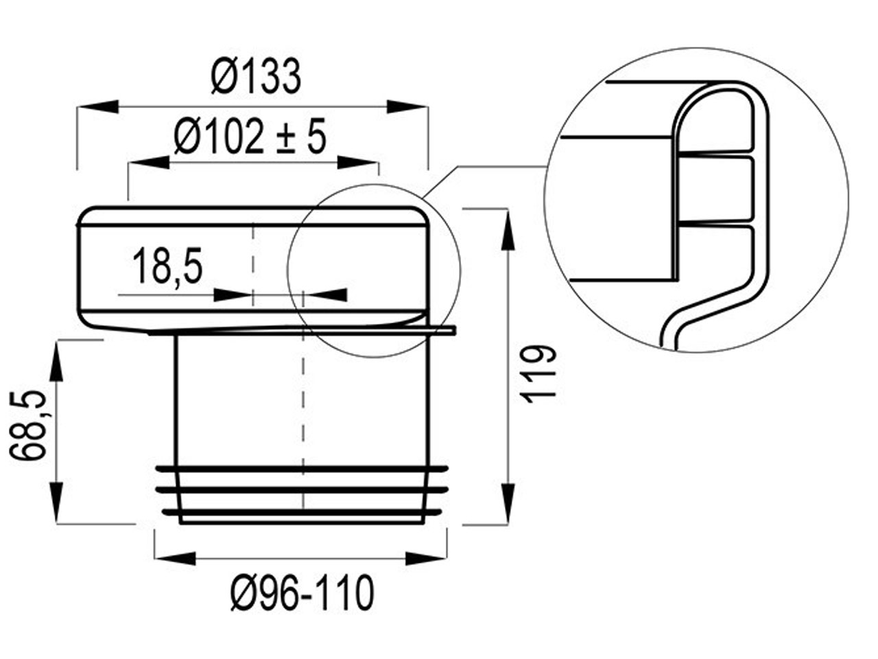 - Baumaße: Innen Ø 96mm bis 110mm, Aussen Ø 133mm, Baulänge 117mm