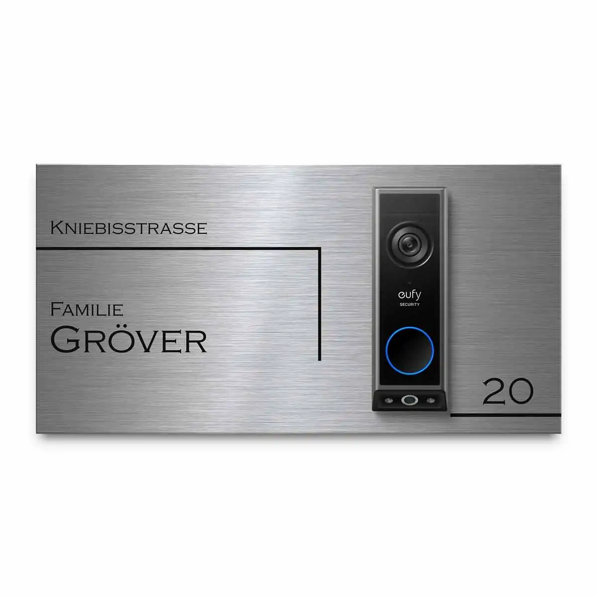 Du suchst eine stilvolle Möglichkeit um Deine Funkklingel im Hauseingang zu befestigen? Gestalte eine Klingelplatte für Deine Funkklingel und personalisiere sie genau nach Deinen Wünschen. Unsere hochwertigen Funkklingelschilder aus massivem V2A Edelstahl machen Deine Doorbell Türklingel zu einem echten Hingucker im Eingangsbereich.