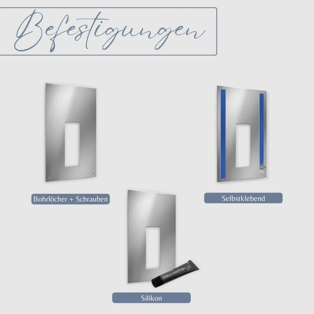 Dein Funkgong kann ganz einfach in der passenden Aussparung in unser Namensschild integriert werden. Das Klingelschild selbst kannst Du optional mit Silikon, Bohrlöchern und Schrauben oder Klebeband für glatte Oberflächen montieren. Solltest Du keine Befestigungsart wollen, kannst du die Platte auch ohne Befestigung auswählen!