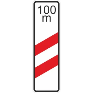 Verkehrszeichen 159-11 Zweistreifige Bake mit Entfernungsangabe, Aufstellung rechts