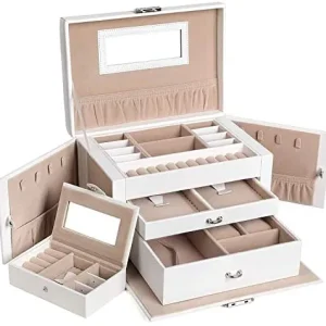 Songmics Schmuckkästchen Schmuckkoffer Abschliessbar Spiegel 4 Hacken