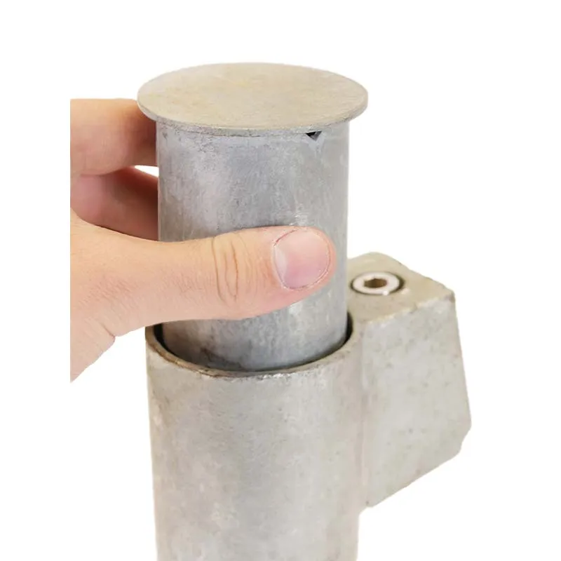 Danach lässt sich die verschlossene Bodenhülse mit Klemmkeil problemlos überfahren und Dreck landet nicht mehr in der offenen Pfostenhülse.