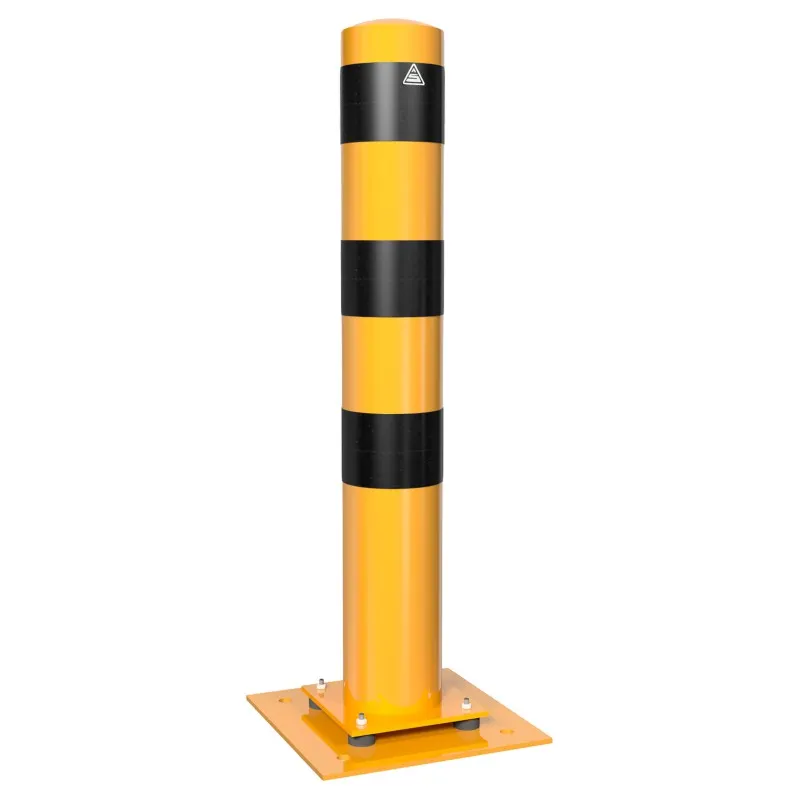 Der neigbare Absperrpfosten aus Stahl wird mit 4 Gummigelenken auf einer Bodenplatte befestigt und hilft dabei Beschädigungen an Fahrzeugen zu vermeiden. Die Bodenplatte 360 x 360 mm mit 4 Bohrungen wird einfach auf dem Boden aufgedübelt. Dazu benötigen Sie noch den Befestigungsschraubensatz Typ 2.