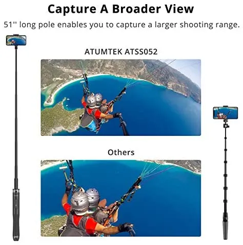 Weit jenseits ihrer bisherigen Vorstellungskraft ist dieses ATUMTEK Selfie Stick Dreibein wahrhaft immer zu der unglaublichen Länge von bis zu 51 Zoll erweitert worden! Sie haben das Recht, jedes wunderschöne Moment Ihres Lebens immer und überall, wo Sie sind, aufzunehmen.