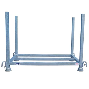 Das Zusatzgestell lässt sich einfach auf die Transportpalette aufsetzen – ohne Verschrauben. Der Aufsatz wird durch die eingestellten Absperrgitter und Fußplatten fixiert.