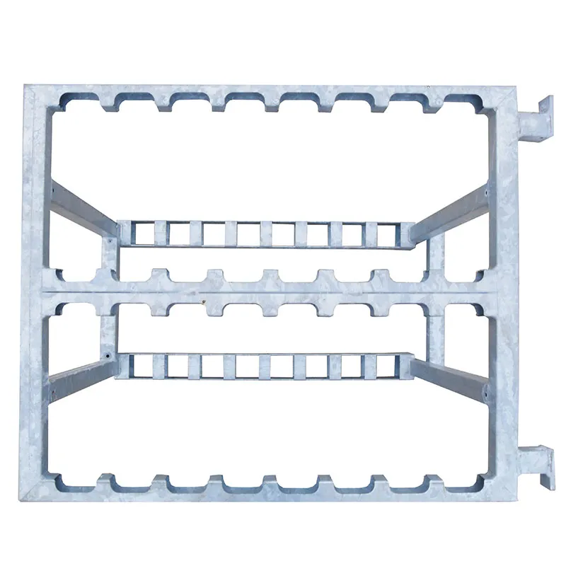 Es lassen sich zwei Körbe an die Stapelpalette (Art.-Nr.: 50380V-115) seitlich einhängen. Aufgrund der robusten Bauweise aus verzinktem Stahl lässt sich der Bakenkorb ideal dauerhaft im Freien aufstellen.