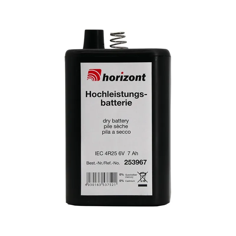 Als Batterie 6V/7Ah ist sie frei von Quecksilber und Cadmium. Durch die kompakte Bauform IEC 4 R 25 mit zwei Federn, kann sie in verschiedenste Warnleuchten und Blitzleuchten eingesetzt werden.